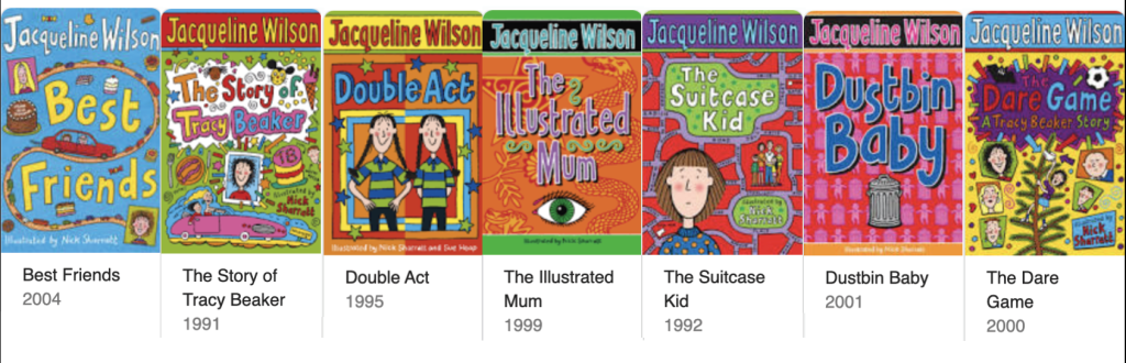 Image: 1991-2004 selection of Jacquline Wilson books https://www.jacquelinewilson.co.uk/library.php