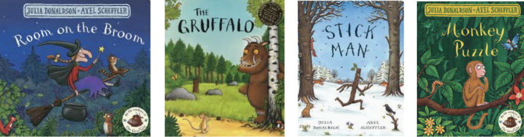 Image: Room on the Broom (2001) The Gruffalo (1999) Stick Man (2008) Monkey Puzzle (2000) http://www.juliadonaldson.co.uk/picturebooks.php#as