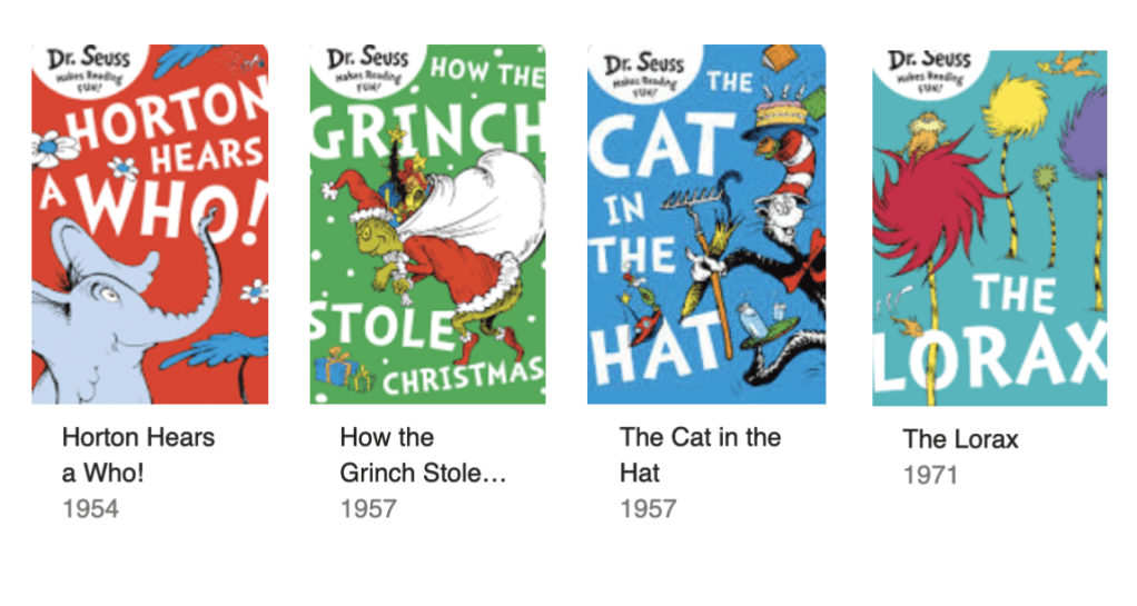 Image: Dr Seuss Books (1954-1971) https://www.seussville.com/books/