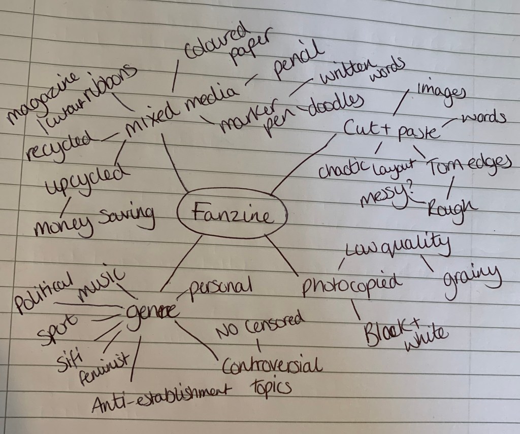 Combining all three genres above, plus the many more available I decided to create a mind map as to what makes up a fanzine.