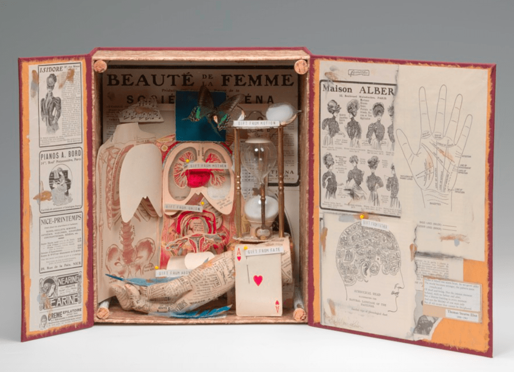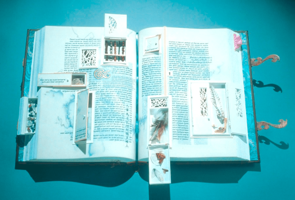 This is very different to other artists books that I have researched, I like the fact that this artist book looks like its a keepsake box, containing items of which could belong to someone from the medical industry. However the true meaning behind this book is the reflection of family history according to the artist. “Gifts is a book object that pays tribute to the tings that are given to us through heredity and the gift of life.”