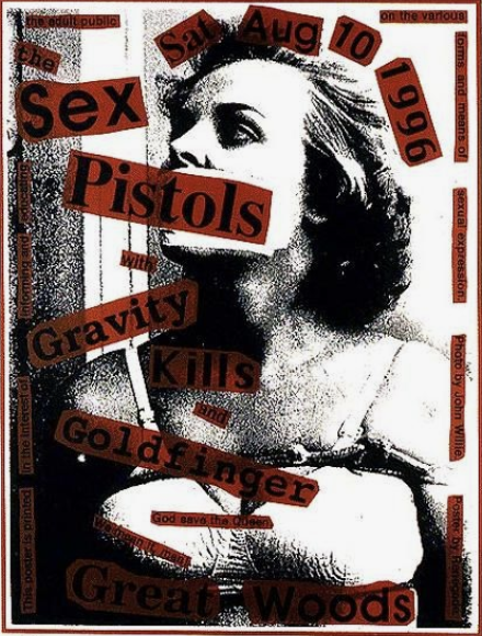 Punk Zines seem to be one of the leading fanzines. Often casually produced, they feature punk literature, such as social commentary, punk poetry, news, gossip, music reviews and articles about punk rock bands or local punk scenes. The style of punk fanzines seem to feature lots of the cut and paste technique, along with hand written words and doodles. I found the sex pistols image above interesting (red background of text), I liked the grainy image with the red and black text cut and paste over the top, it seems that this image was created digitally due to the opacity of the red boxes, as you wouldn’t be able to achieve this with already printed materials. I also liked the first image ‘Guilty of what’ I was drawn to this by the many different typefaces used, also with the large torn image and newspaper article.