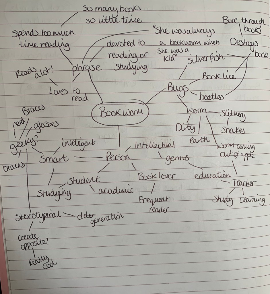 I started off by creating a mind map, I felt the ideas flowed for this phrase much quicker than it did for the previous phrase (a closed book).