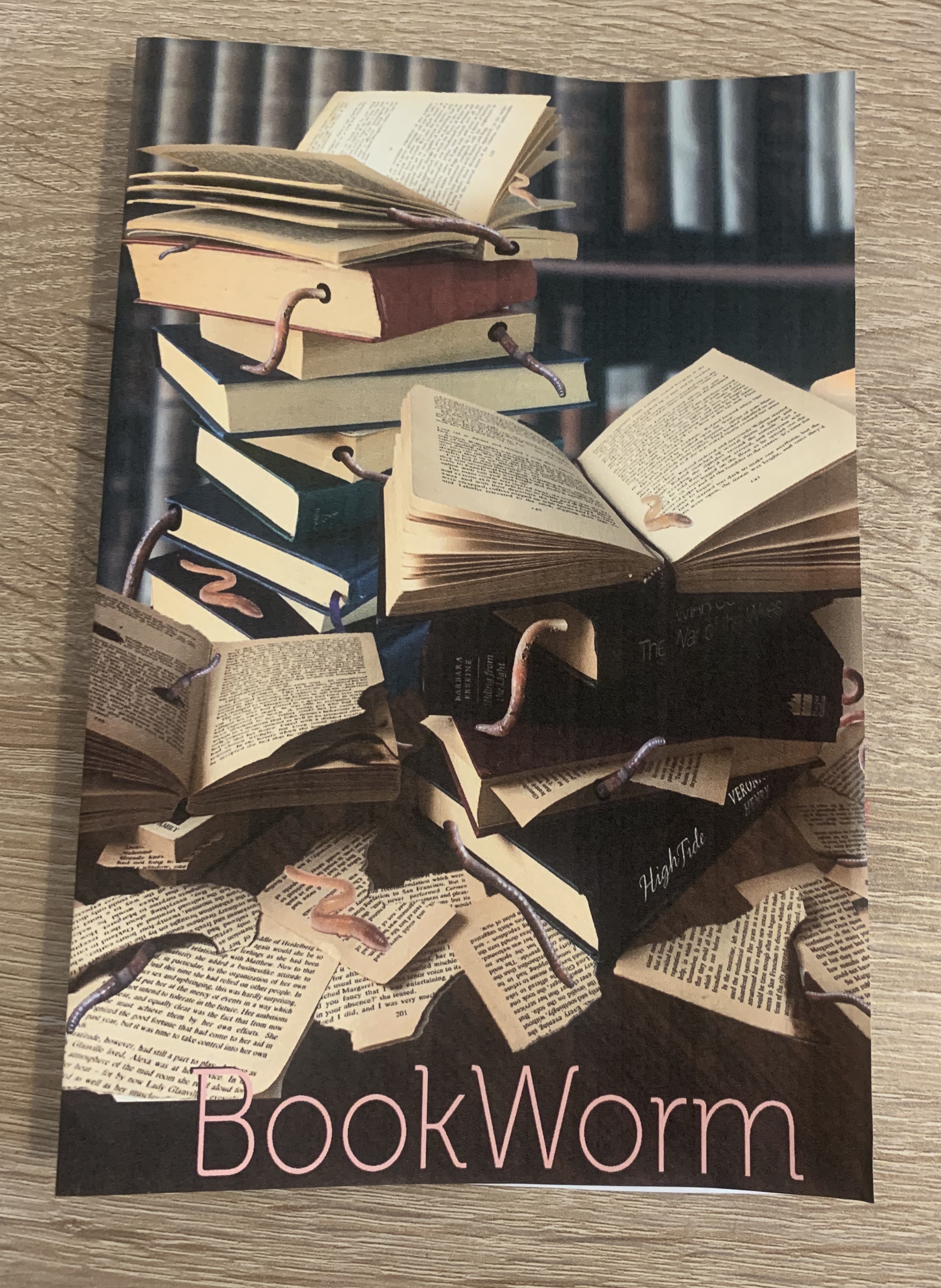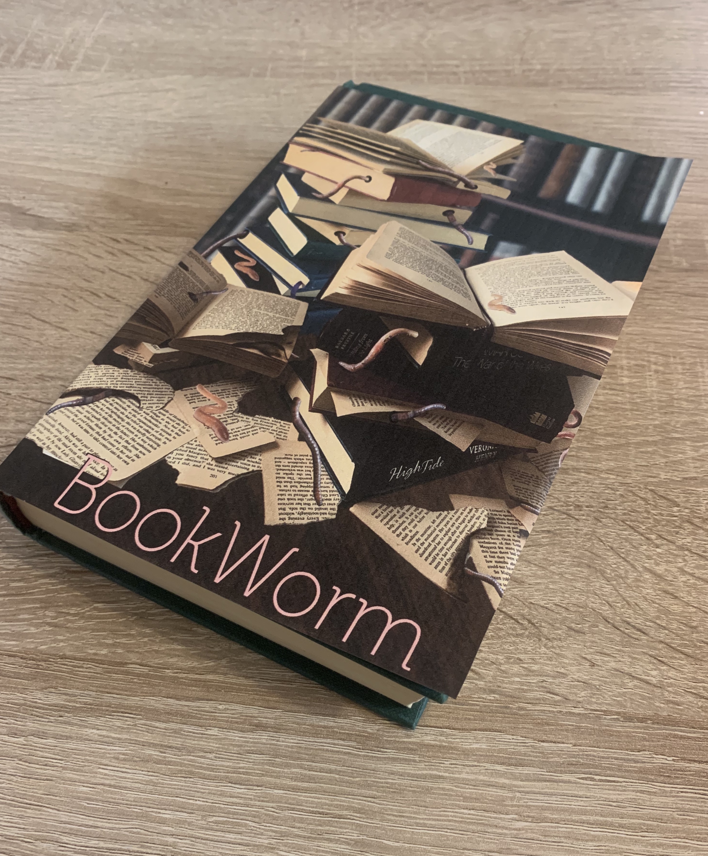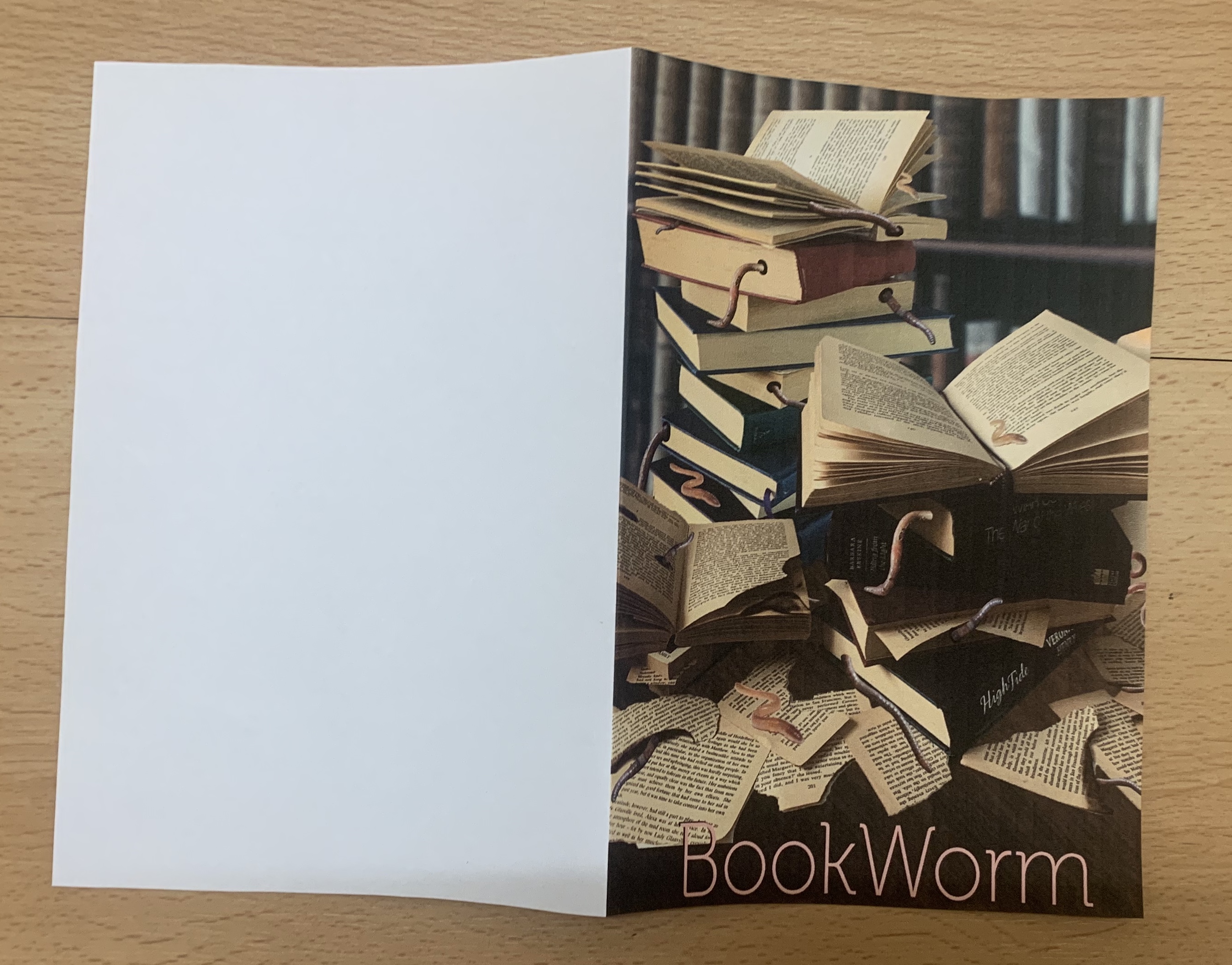 I felt that both the wrap around effects wasn’t as successful as I had hoped, however I started to like the look of my original design with the worms weaving their way through the books.