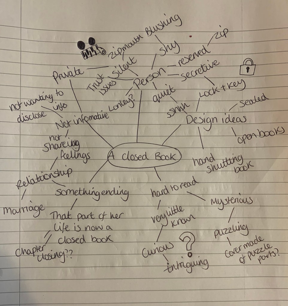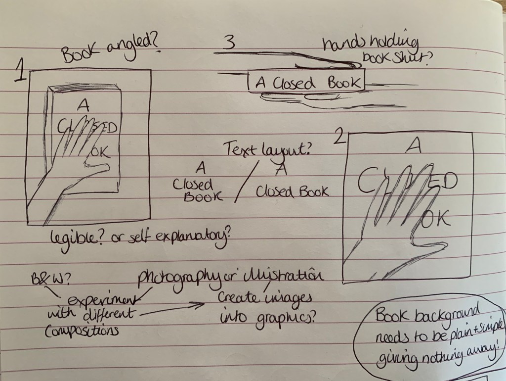 I didn’t feel there was any more necessary research I could do on ‘a closed book’. So instead I have decided to look further into each sketch and note down design elements to help narrow down my final design.