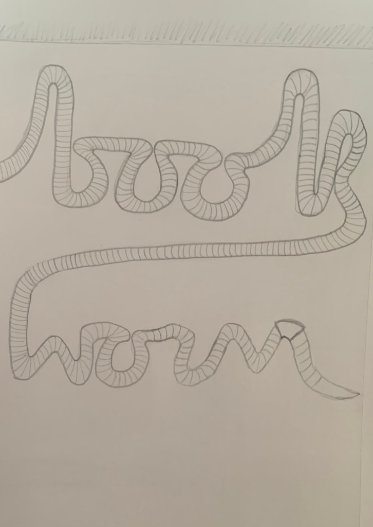 Above is the finished result of the ‘worm word’. This didn’t turn out as well as I had originally expected. I feel that although it is clear what the design is representing it isn’t as strong as I had hoped. I am still glad that I experimented with this design and visually developed it.