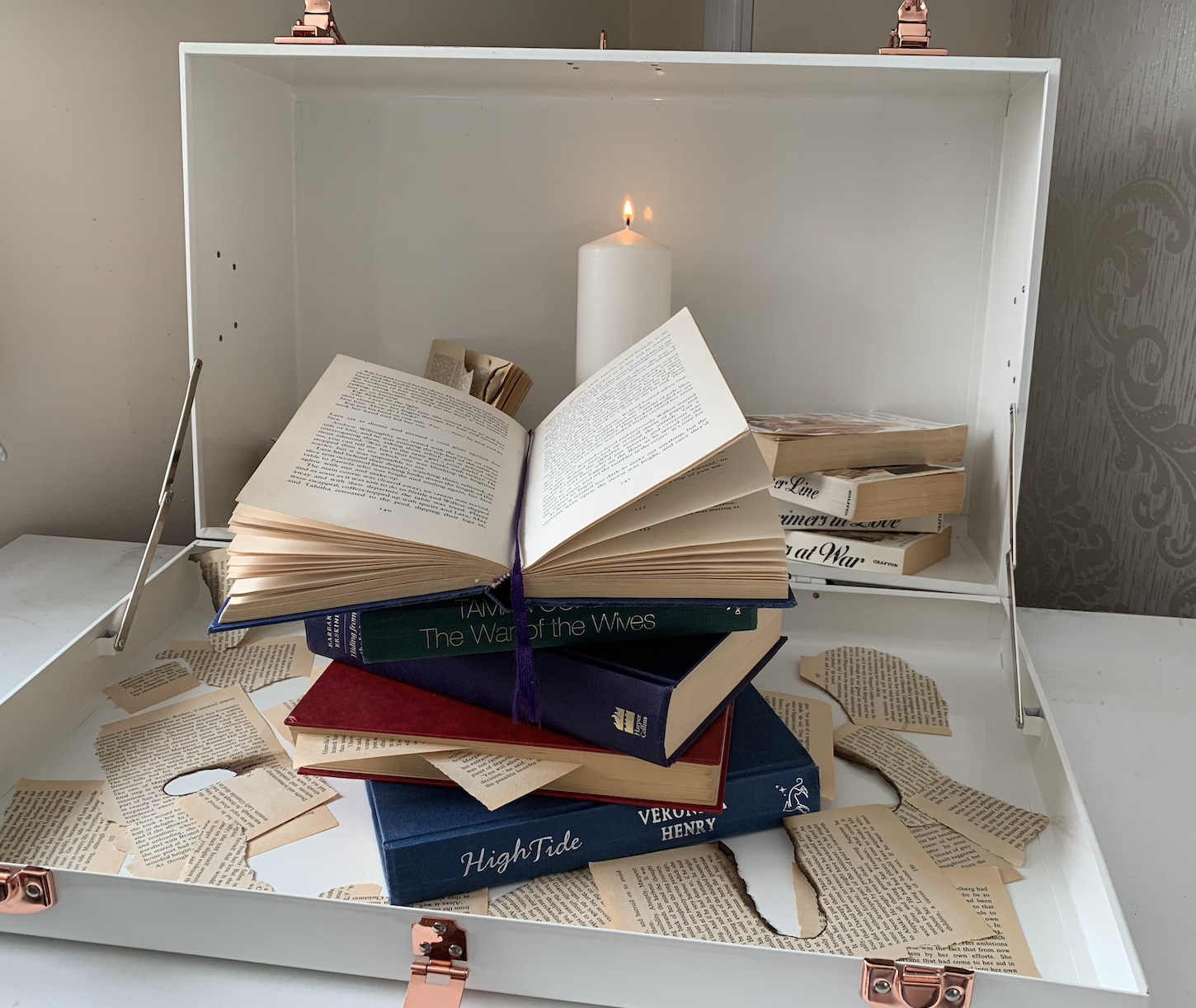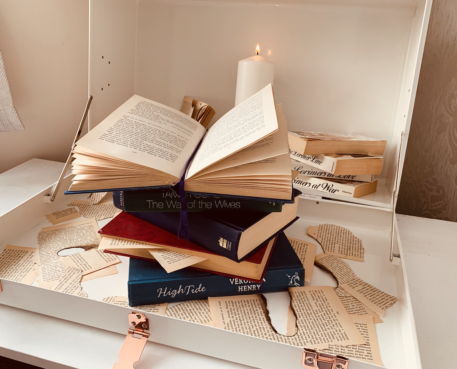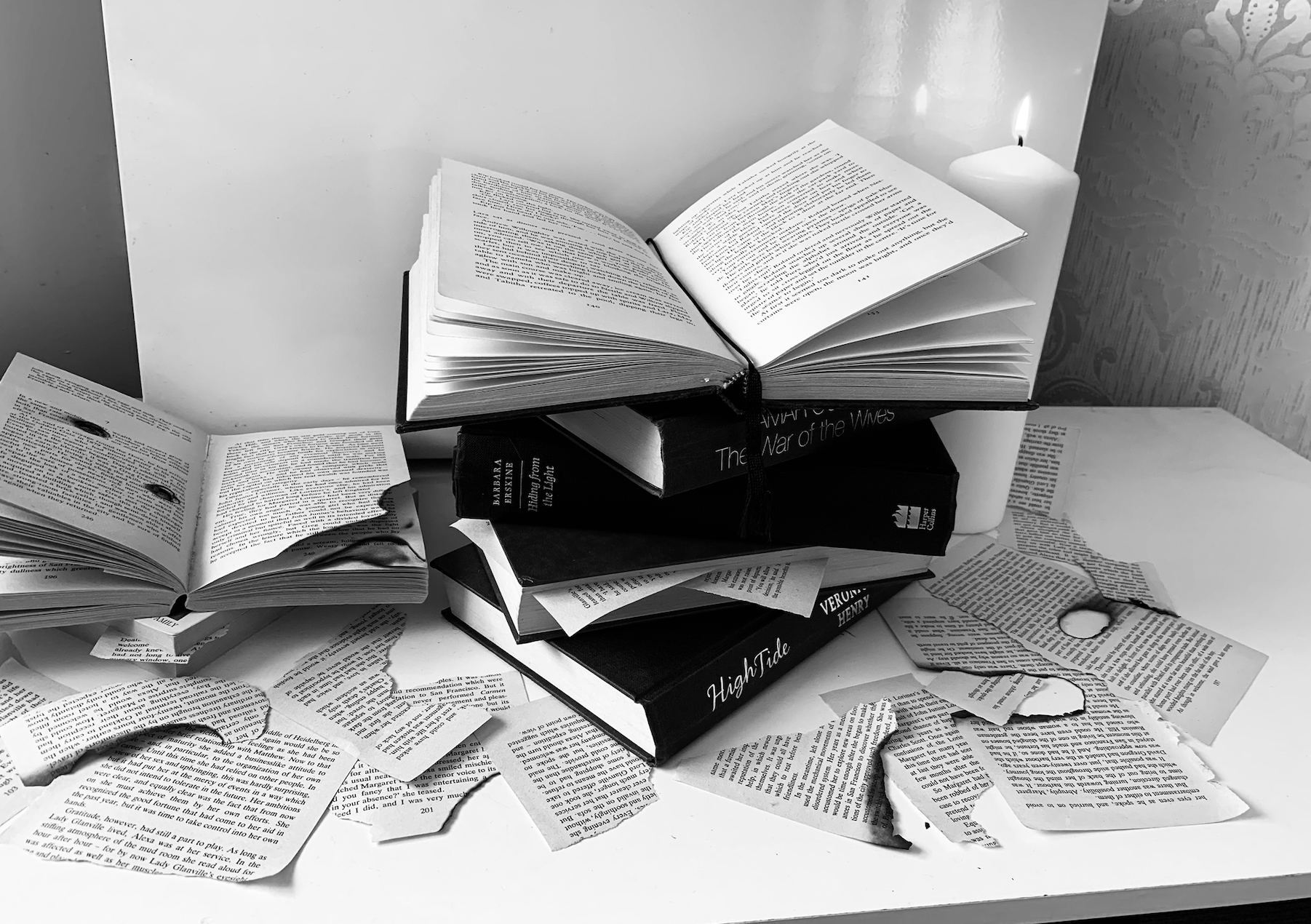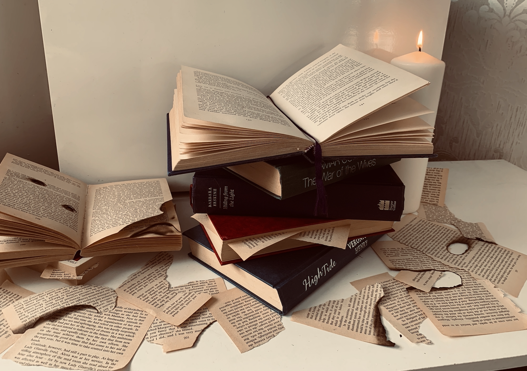 I decided to gather some books and experiment with different positions of books. I then took photos of the successful compositions from different angles and using different filters.
