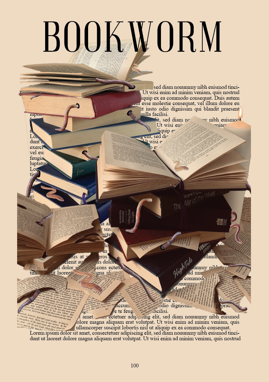 I feel that my design is strong and relatable to the phrase. The design itself is very obvious and self explanatory, with a ‘say what you see’ feel. I think the design looks much better and is stronger after the last few steps of developing and visually critiquing the designs. Once printing off my design and folding to to create a pamphlet I feel it has brought the reality to the design. Although I haven’t thought about the contents of what would be inside, I would be willing to explore further into what could be include and how this would create a narrative across the pages. An idea would be to include a two section evaluation, one of the phrase; being of the readers love for books and the other being of the bugs that infest books? Calling it the bugs and the books. Or perhaps creating a 2 in 1 pamphlet with covers on both the front and the back pages (back being flipped upside down) and the centre pages of an illustration to separate the two parts. (reversible double sided document). Thinking of the contents of the pamphlet would encourage my ideas to develop further, as I would need to create inside pages and a back page. These ideas would all stem from the contents layout which I would pursue.