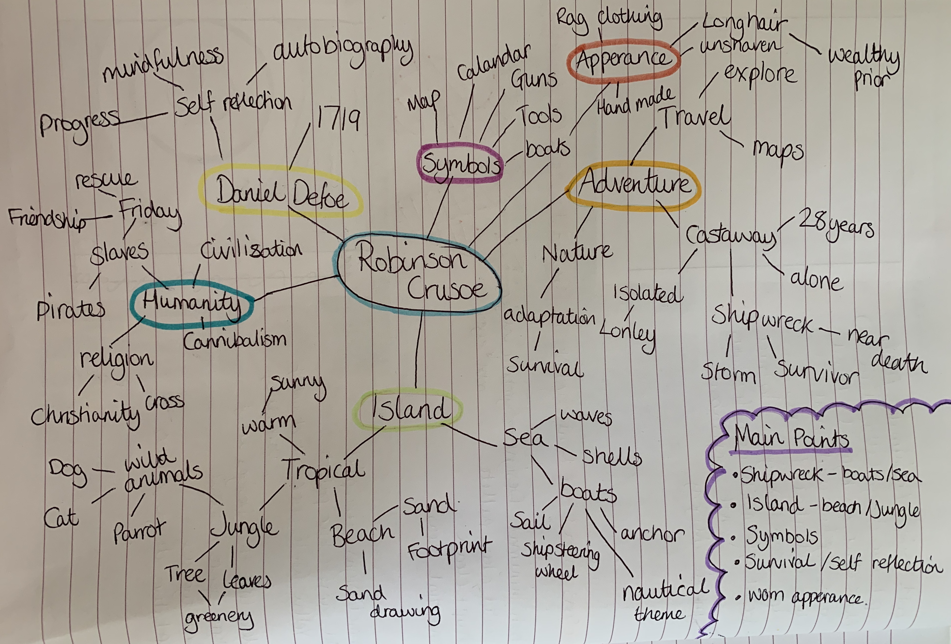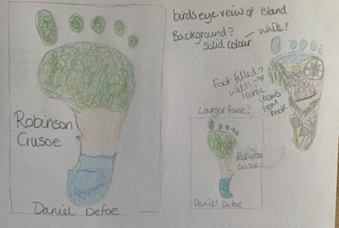 I created two mind maps, one focusing on Robinson Crusoe and the other on design ideas for the three books.