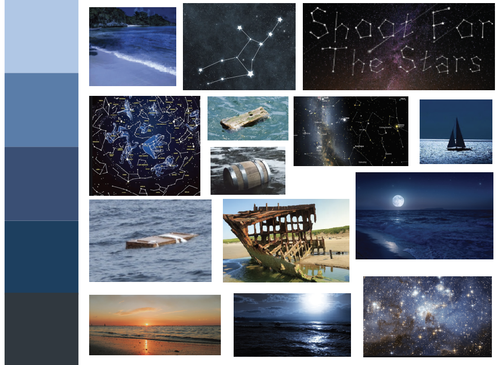 The second design I looked further into was the ‘written in the stars’ design. After sketching out I decided the ship wrecked cover would be more fitting creating a cover more relatable to the story. I feel this design is different to any other existing covers for the book.