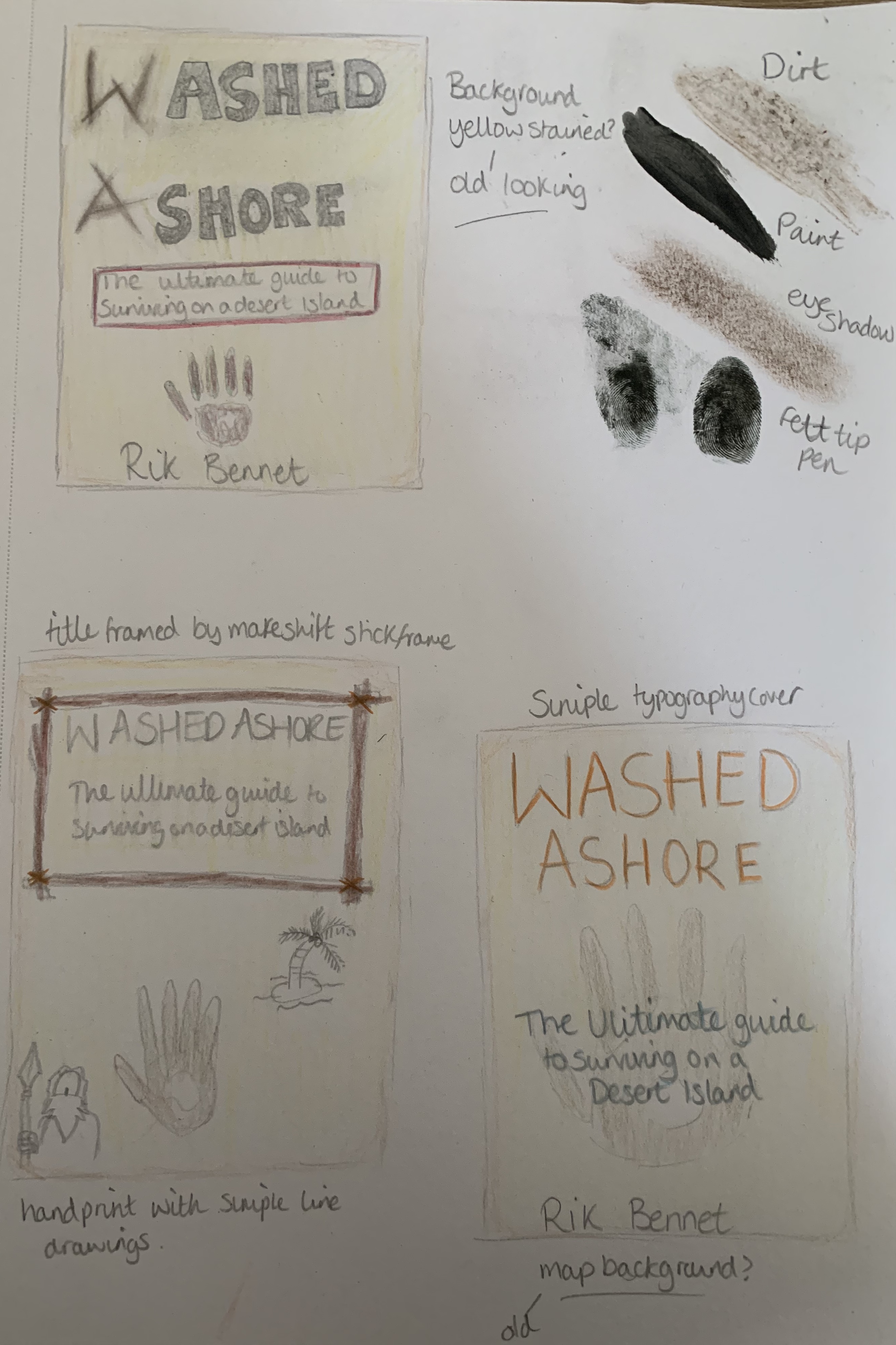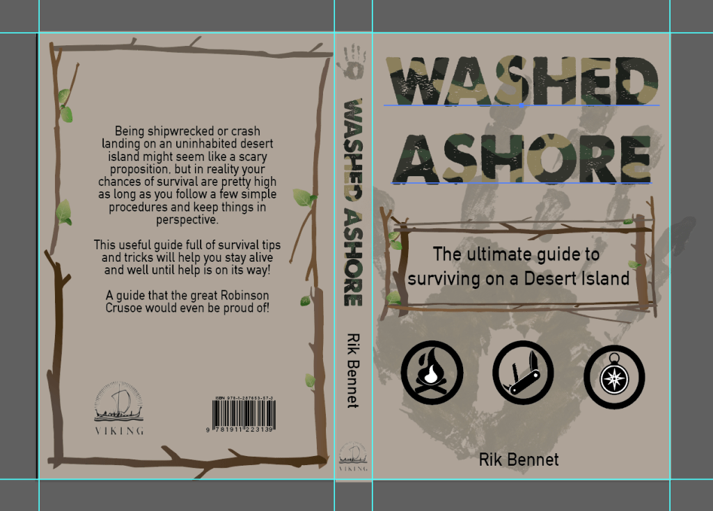 Part 3 Washed ashore deign: Design a ‘how to’ guide called Washed ashore: The ultimate guide to surviving on a desert island by Rik Bennet, that offers practical advice on what to do if you are shipwrecked, as well as reflect the theme of adventure.