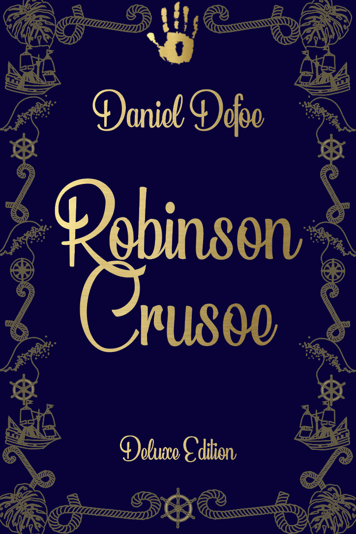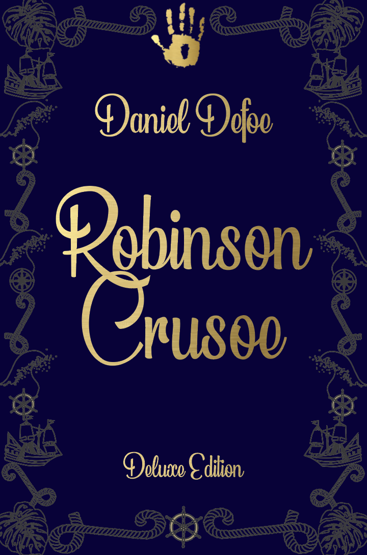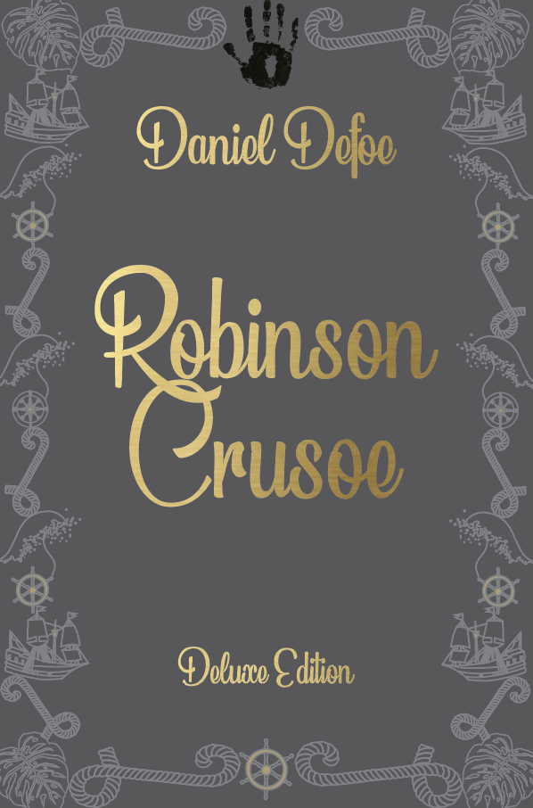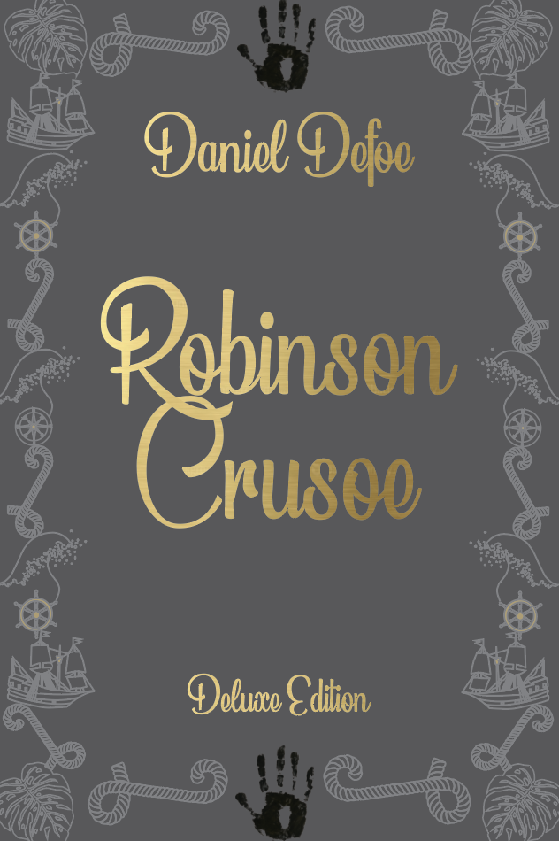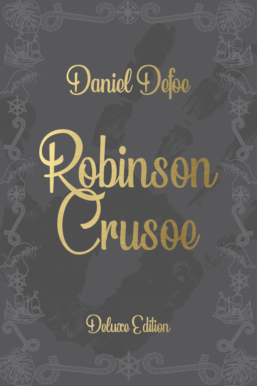 Part 2 Deluxe edition: Design a deluxe hardback collectors’ version of Daniel Defoe’s Robinson Crusoe, it should reflect the historical themes of the story and its associations. This version can present the content in a larger, finer, more luxurious way, suitable for armchair readers and classic book collections.