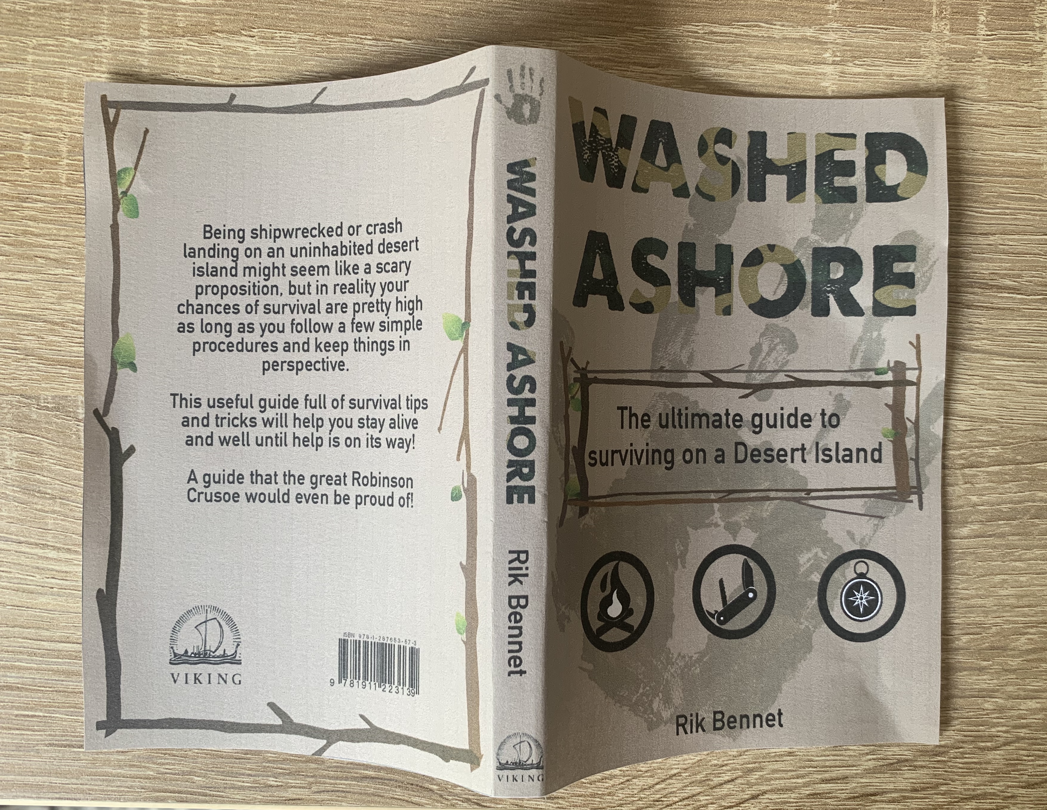 As a side project to accompany the re-release of Robinson Crusoe, Viking Press has also asked you to design a new book called Washed ashore: The ultimate guide to surviving on a desert island by Rik Bennett. This is a ‘how to’ guide that should reflect not only the practical advice it offers, but something of the adventure of being a castaway.
