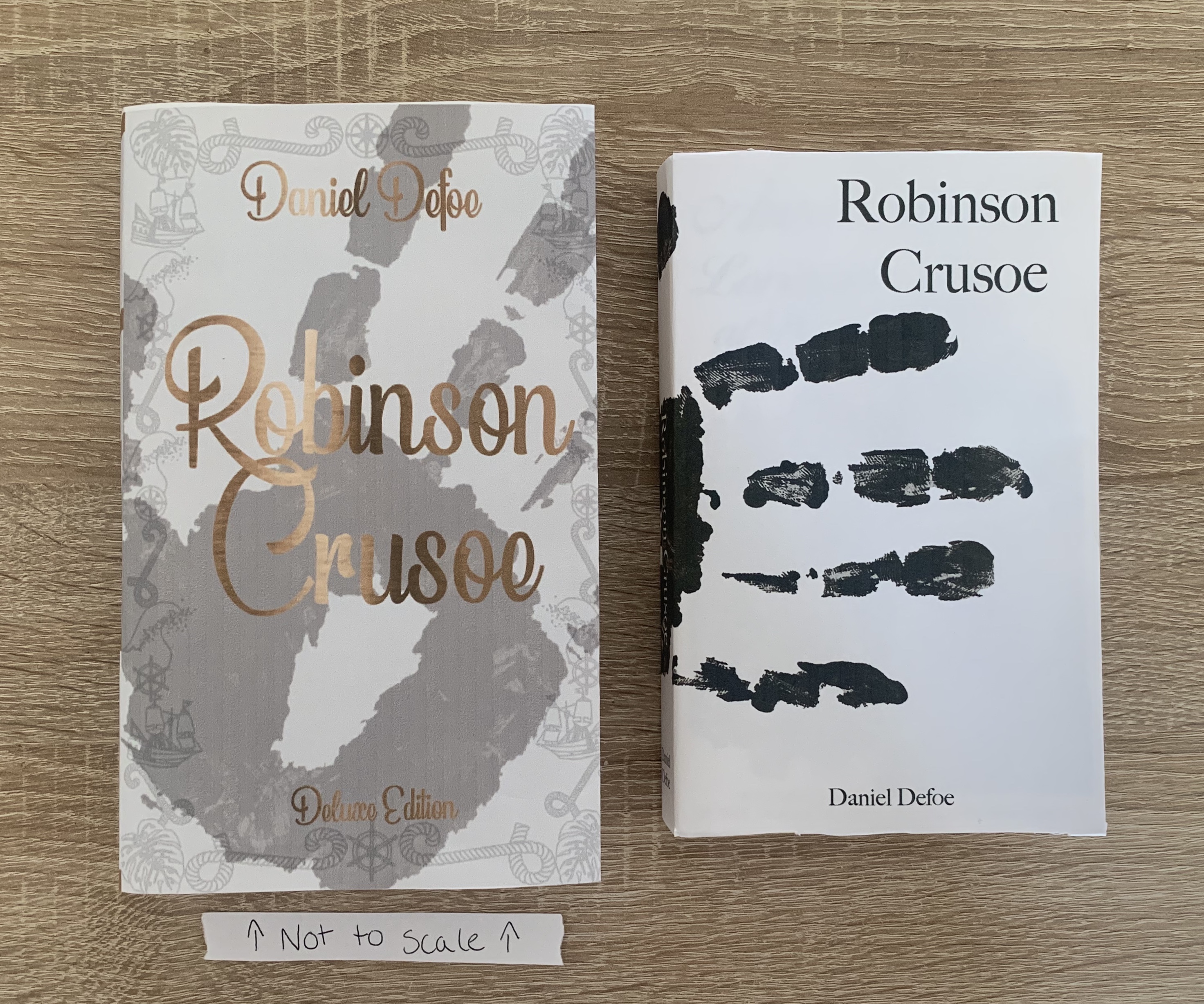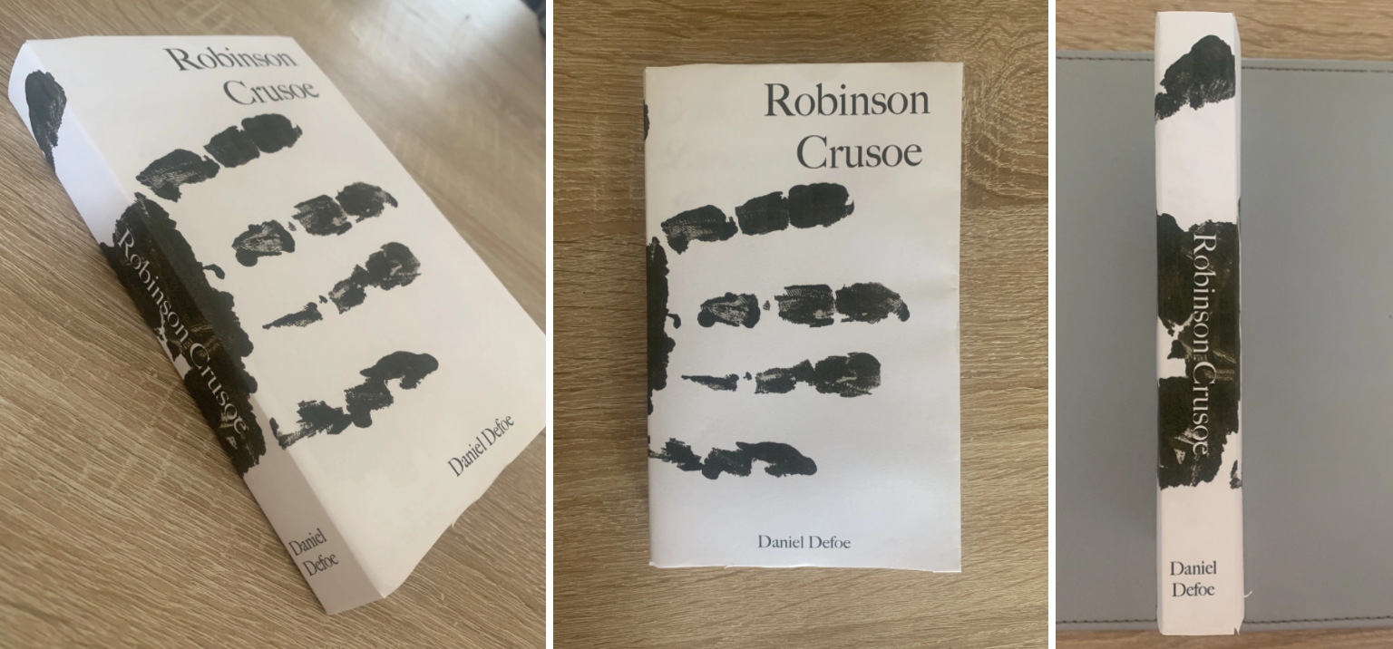 Due to the pandemic I was unable to do a few things which I would of done, such as visiting local libraries and bookstores to examine existing Robinson Crusoe books and to also look at different size books to help with the sizings of the books which I created. I also would of considered having my designs printed onto better quality papers to see how the design works etc. But I am still happy with the work that was created.