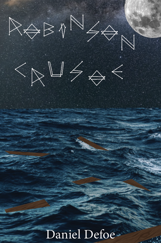 I liked this design because I felt it was completely different to the other designs I had seen of Robinson Crusoe. It shows remains of a shipwreck lit by the nights sky, with the title and name ‘Robinson Crusoe’ written in the stars.