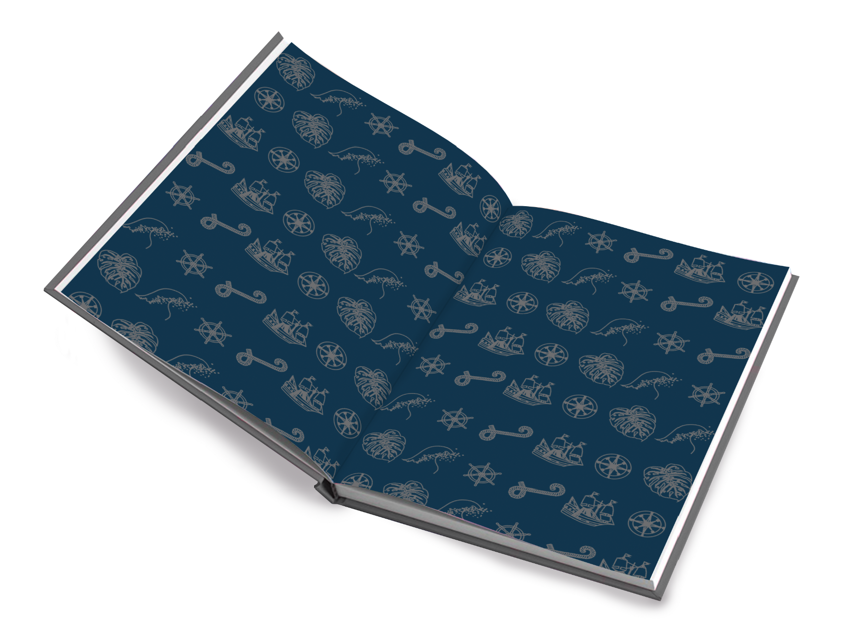 The cover of the hardback cover will be made from 1500 micron board covered cloth with the design printed onto it, all the text on the cover will be a brass/copper foil along with the handprint on the spine. The endpapers will be printed onto 150gsm matt paper. The pages will be printed onto 120gsm bond paper, casebound into the cover with grey headbands for finishing touches. The slipcase will be made of a slightly thicker board of 2000 micron board with the handprint design on the outside coated in a matt laminate finish with spot uv applied on the handprint, the inside of the slipcase will be lined with the same design as the end paper to give it a complete finish.