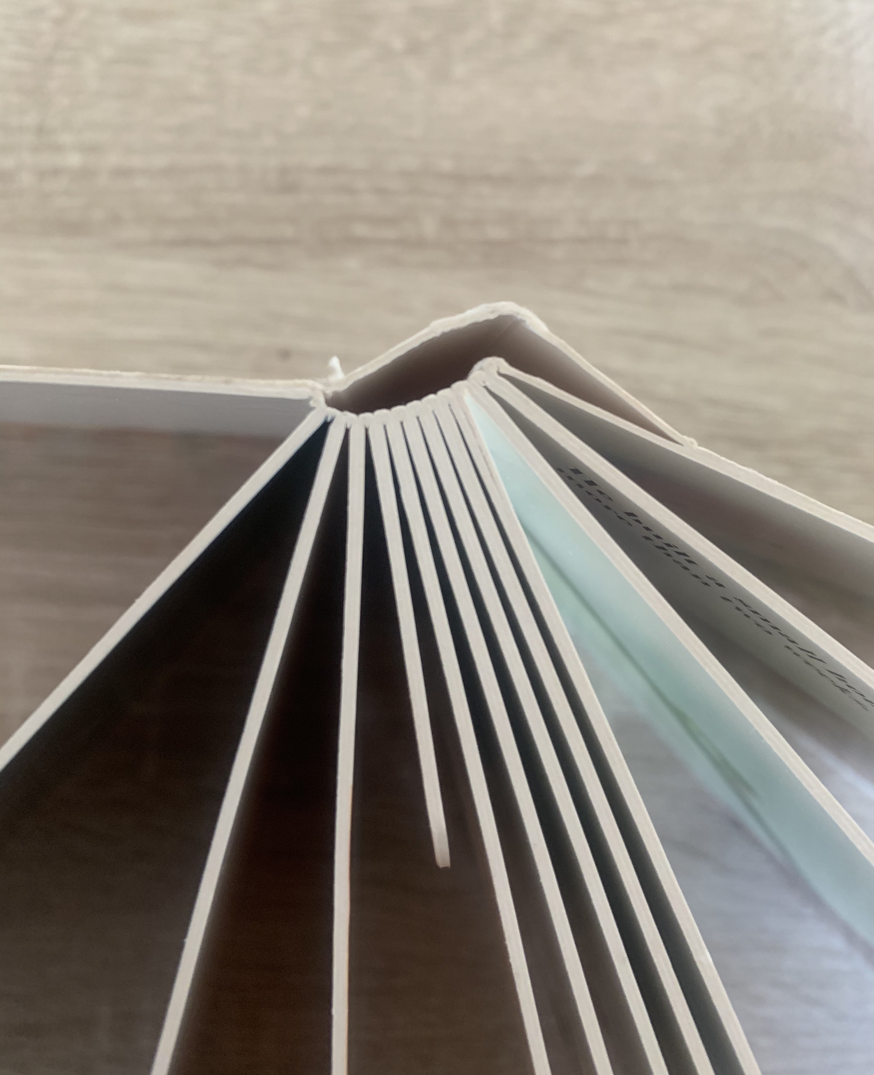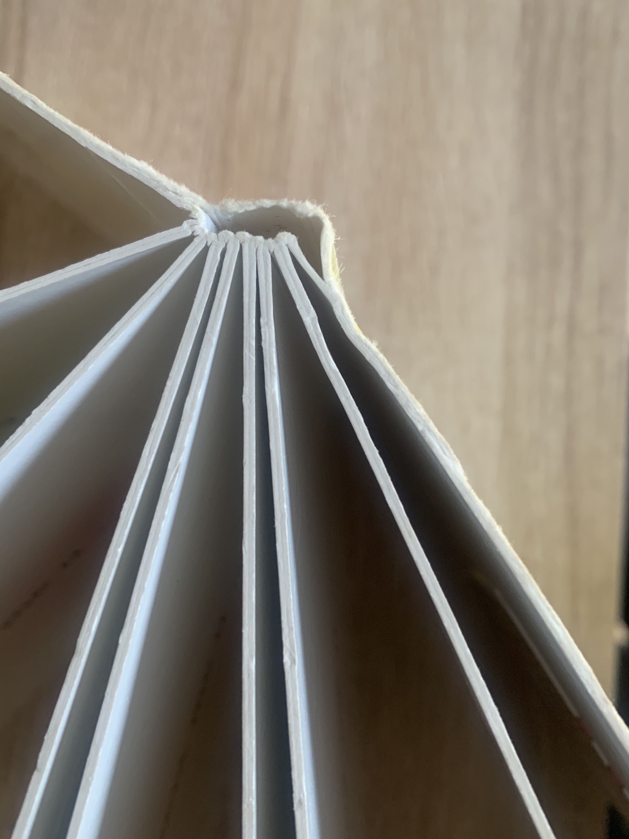 Annalise the binding style of the books you’ve collected. How does the book block adhere to the cover? How does it adhere to the spine? Is it stitched or glued? You’ll notice that in case-bound or hardback books, the sections, or signatures, are sewn together and glued to the spine. Paperback books, on the other hand, are more likely to be ‘perfect-bound’, where the pages are glued together and then directly onto the covering.