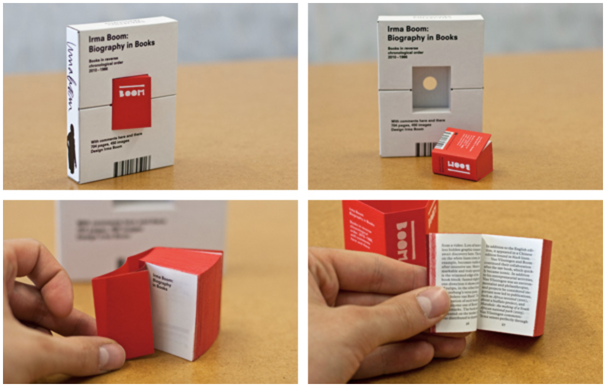 Irma’s work is very interesting and unusual, particularly ‘Irma Boom Biography in books’ This appears to be a book within a book which is in-fact completely functional. These designs are completely unique to Irma Boom.
