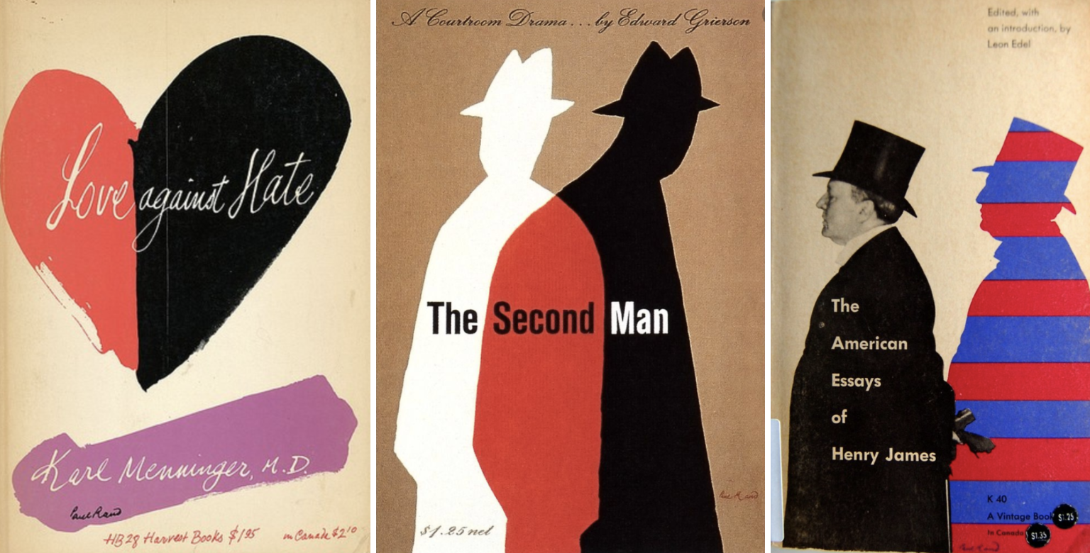 Each design shows a silhouette within the design, Rand has clearly adapted his style to relate to the contents of each book.