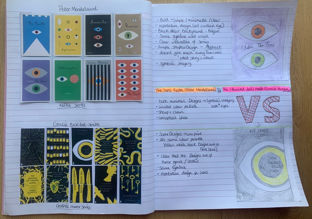 3. Now, select three or more designers from the list that you are particularly drawn to, either because you like their work or because you don’t understand their approach, and research their design careers in more depth. Think about how they’ve responded to very difficult design challenges, whether they have an underlying conceptual and/or expressive approach, and how their work has evolved over time. Continue to use your learning log to record their work visually, explore these covers through drawing, and your responses in note format. See this as a quick fire activity rather than a long essay.