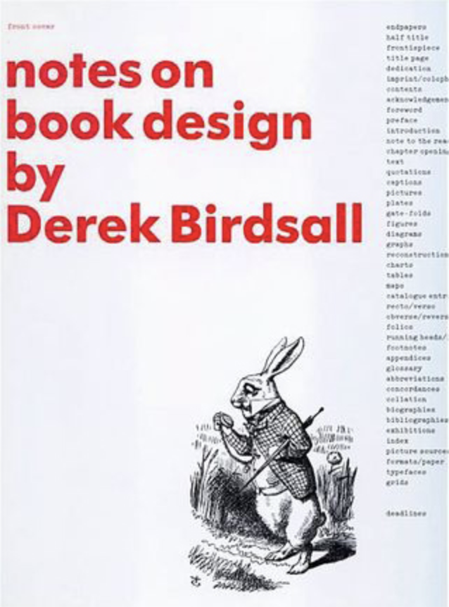 Notes on Book Design by Derek Birdsall – 2004. I felt like I wanted to start off with one of Dereks own books, to see if I can gain better understanding behind his design choices. ‘Notes on book design’ is an educational book focusing on a lifetime’s experience in designing books, and discusses nearly fifty books that he has designed. The cover for this design is clear and minimal, the choice of red font creates the perfect eye catching title, however I am slightly confused as to what the image is meant to represent? Although I suppose not all designs add images in relation to the contents. I don’t find Birdsall’s work expressive as the cover doesn’t give much away about what the genre or what the book is about.