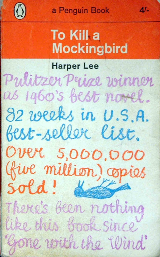 To Kill A Mockingbird by Harper Lee – 1963 – Penguin Books. Not quite the typical Classic Penguin cover, however this still creates an interesting and different design, however I do feel it looks like somebody has just simply written notes over the cover. I found an article stating that at the age of 12 one of Derek’s teachers had recommended he join Art School, on the basis of his exceptional handwriting. Im personally not a fan of this cover, I feel it looks messy and unprofessional, quite frankly I’m surprised the client even agreed to it! BUT.. it still creates a unique and recognisable cover which expresses facts on why the book is good, which in turn will make people want to read it.