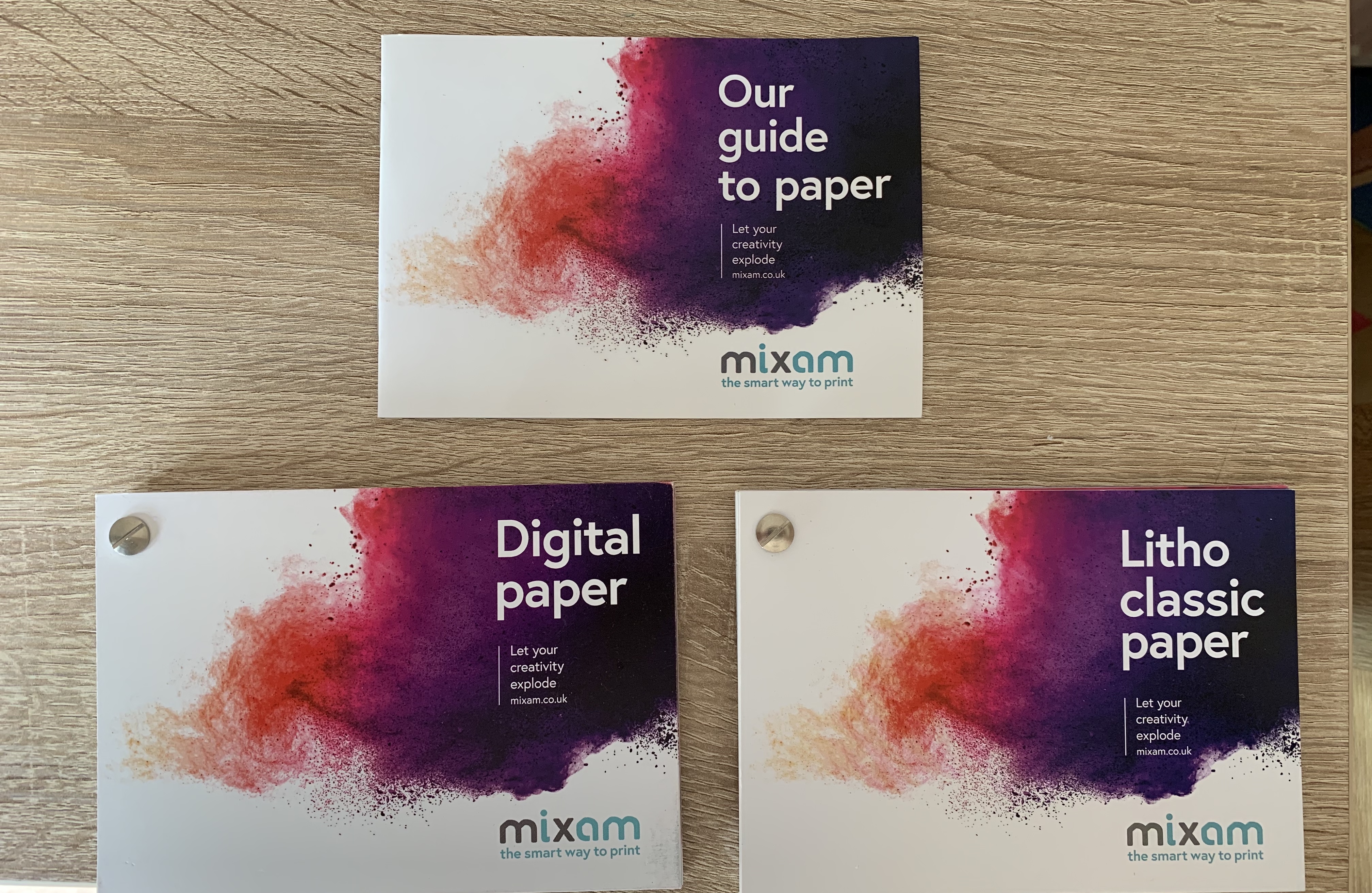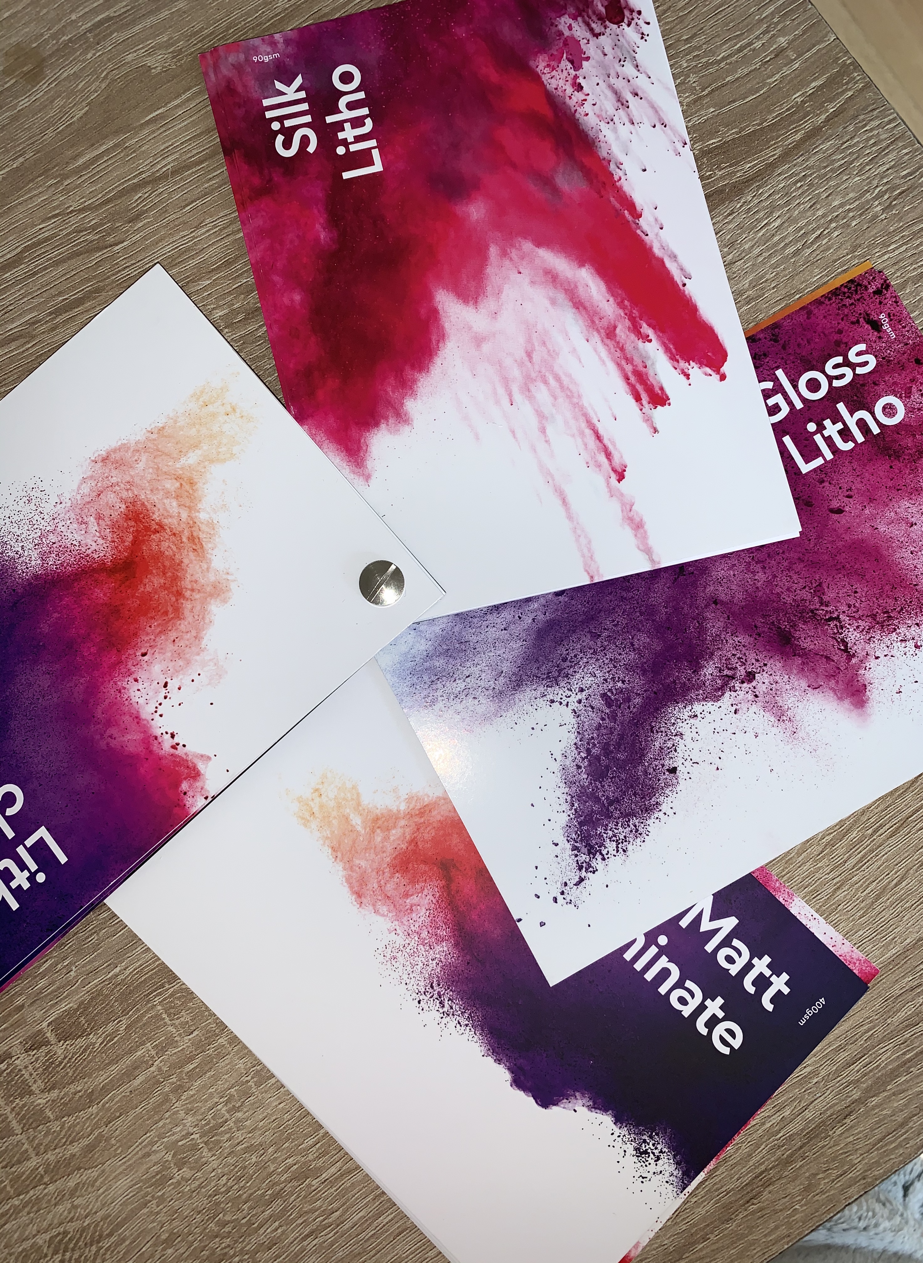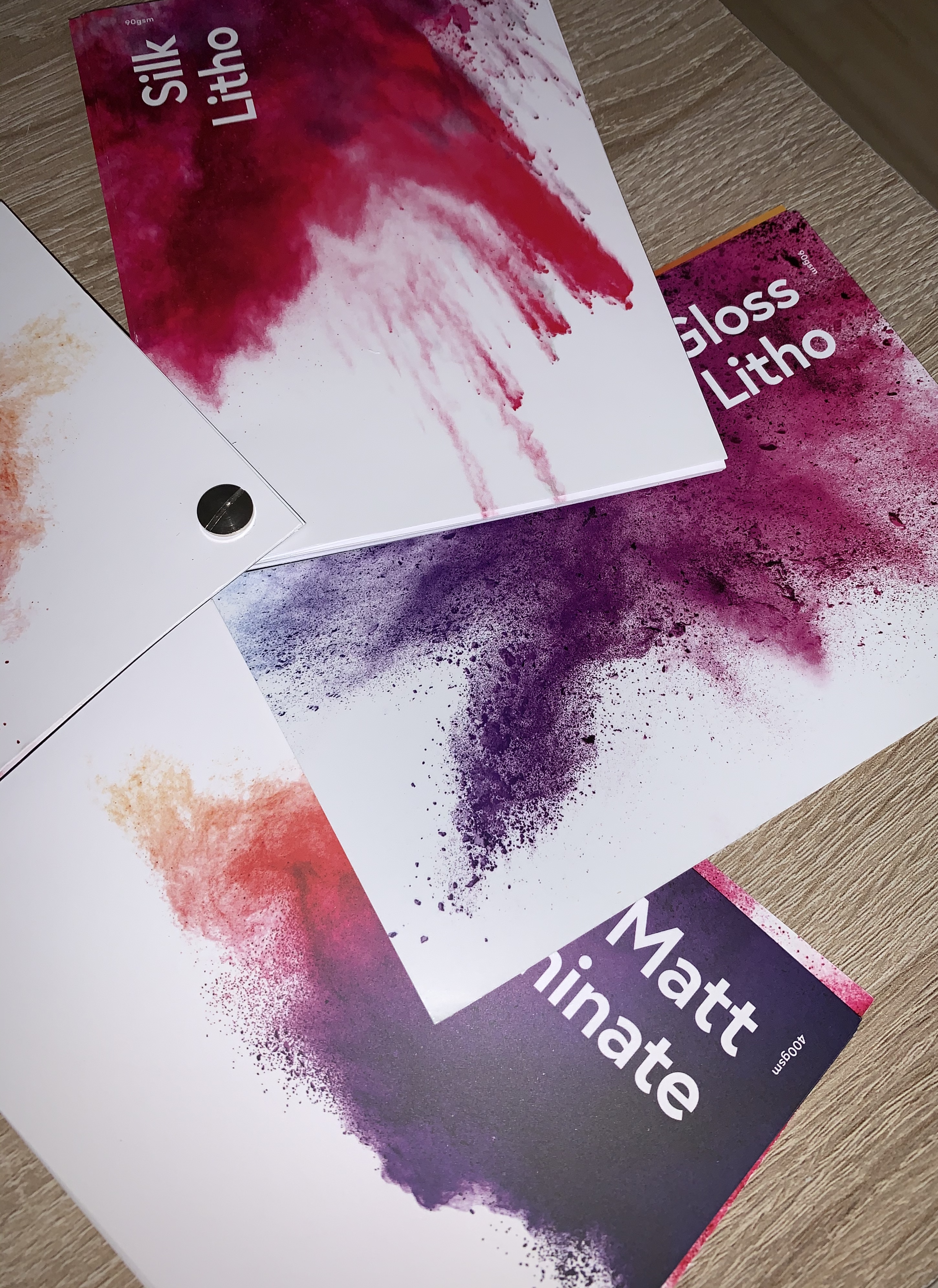 The second print company I requested a sample book from was Mixam. They provided two swatch booklets with 50 pages of different paper types, finishes and weights. Having the booklets made in a swatch format makes it easy to fan out and compare pages without having to flick backwards and forwards.