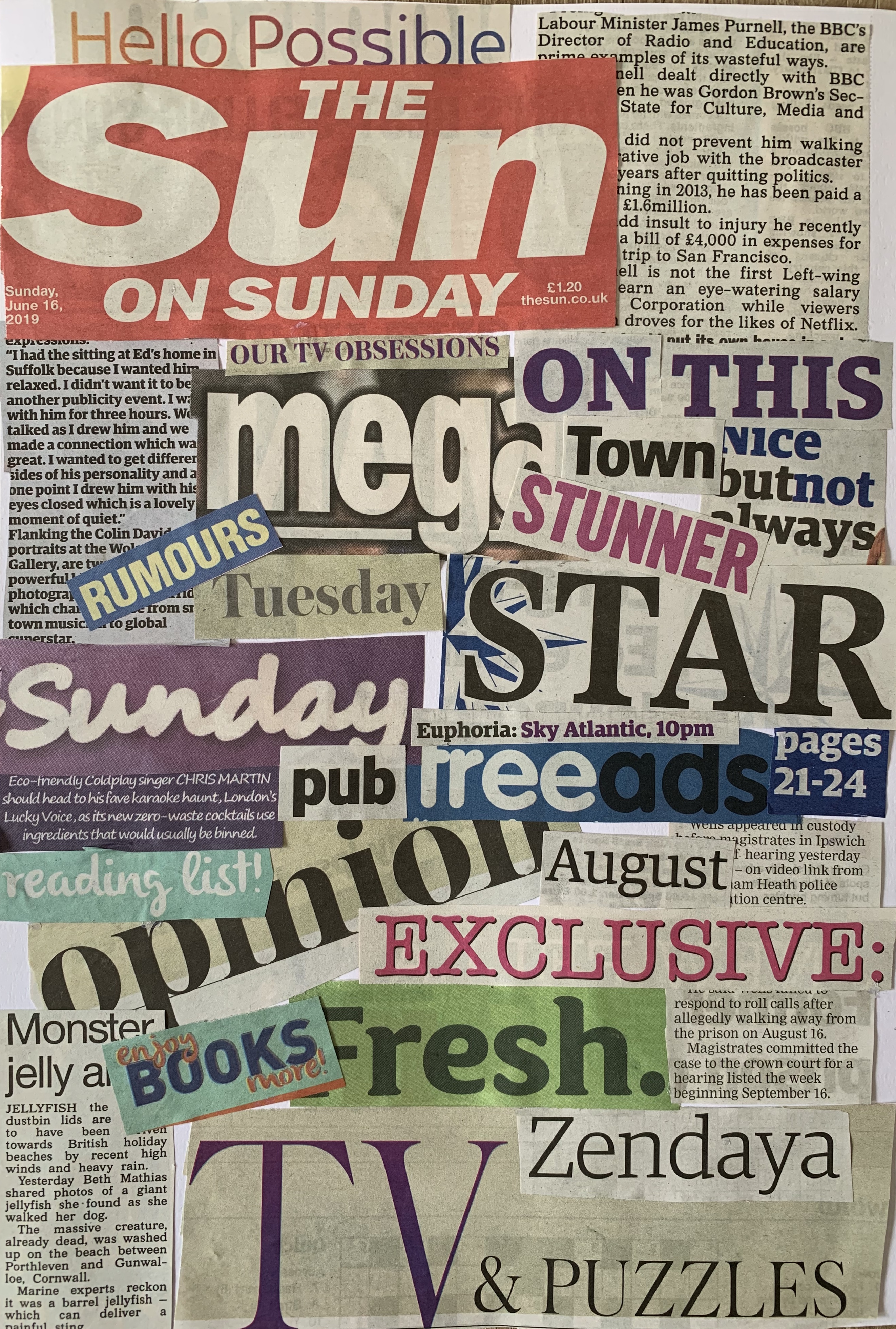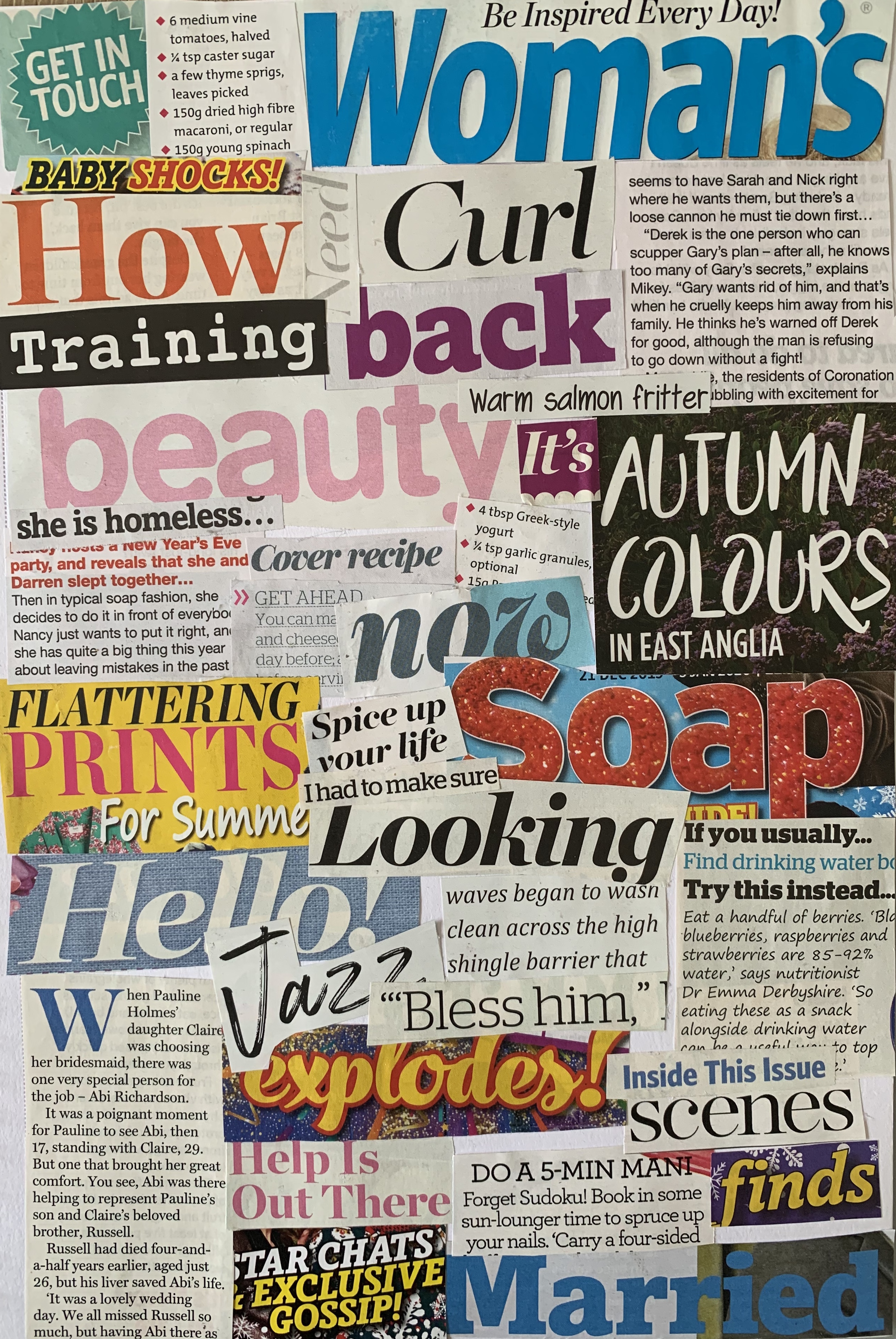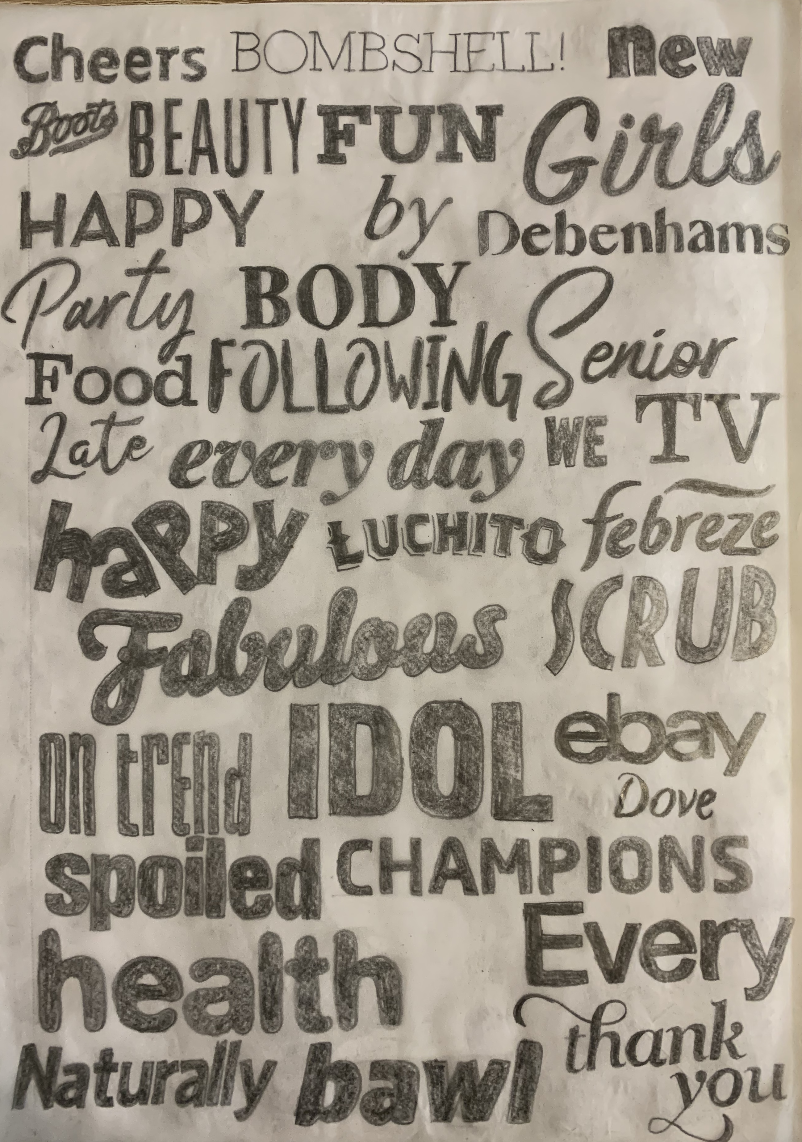 Im glad I made the two collages, as whilst writing my reflection above I found myself referring back to the newspaper and magazine collages to see the varieties and quantities of typefaces used within. So both ended up become beneficial which was a relief that I hadn’t wasted my time, nor pages in my sketchbook!