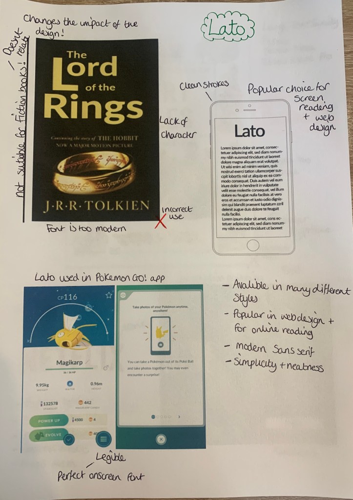 As Lato is more popular in the wed design world I wanted to compare this typeface to others which wouldn’t work successfully on screen.