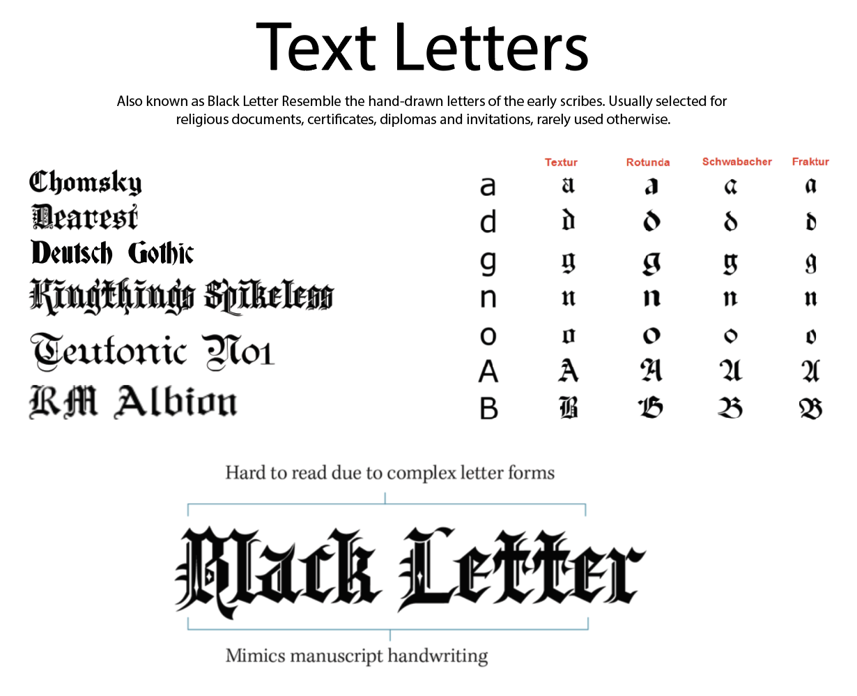 Following the brief I sorted these fonts out into classifying type groups and added extra information, the results are as followed.