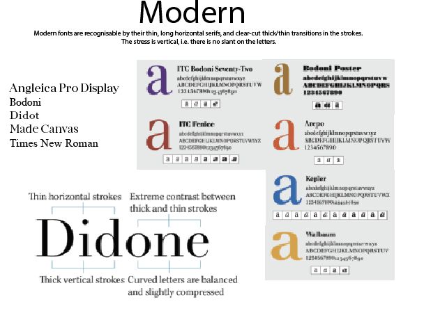 I have selected these particular fonts as I wanted include one from each classification category to give a variety of typefaces and for further exploration.