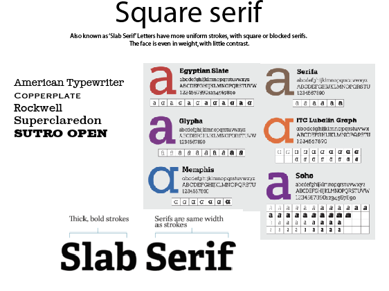 Reflect: Consider and reflect on the nature of the type you are collecting. Examine and annotate printouts with your own impressions of the letterforms. Use descriptive words that express something of the form and character of the typeface. Follow the same process fro your ‘wrong’ typefaces as well.