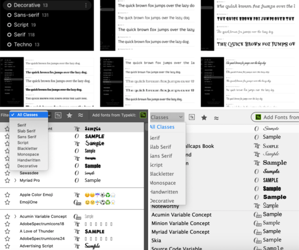 Because I have so many fonts on my laptop I decided to search for a font organiser online and came across FontBase. FontBase helps you quickly manage many fonts, create collections, organise your folders, and start using your fonts in an efficient way. Also both Illustrator and Photoshop have built in filters which sort each typeface into the correct folder.