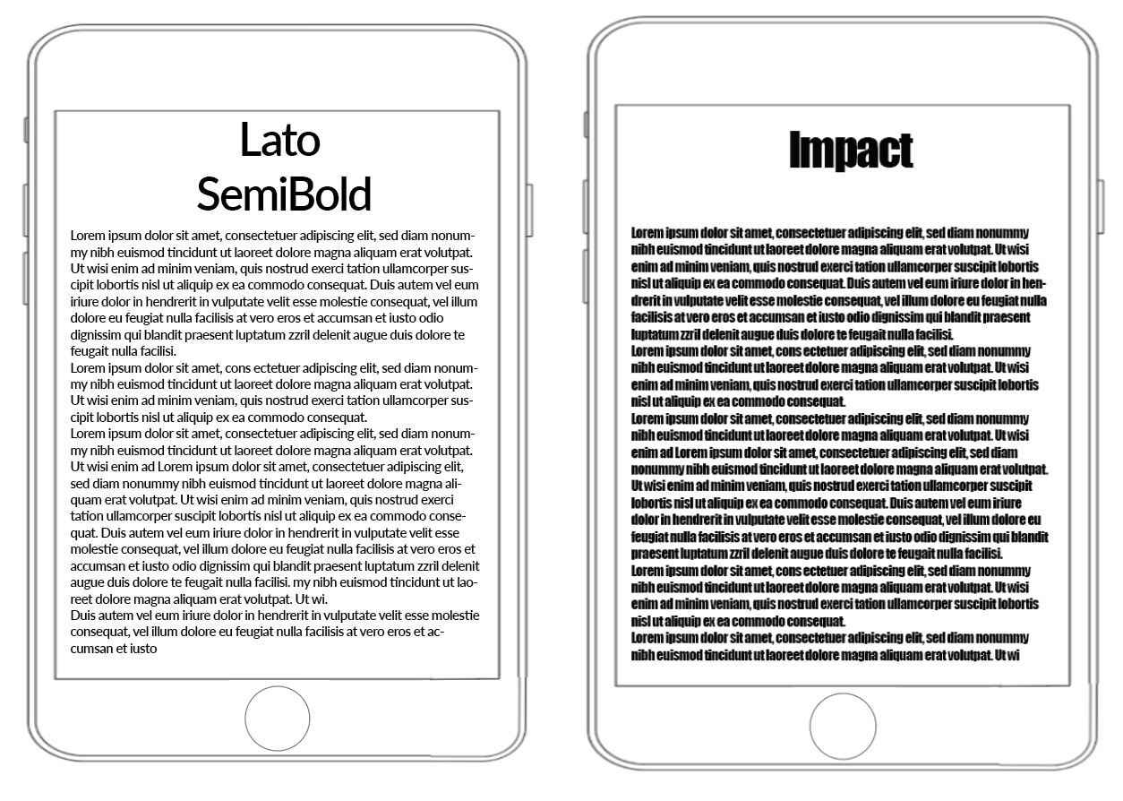 As you can see from the above examples, regardless of the size of the screen Lato can be easily read, this is due to its clean clear stokes which makes the font legible and easy on the eye. This typeface also has a modern feel to it which I feel oddly makes the technology look better? I feel the modern typeface with the modern technology make a complimentary pair.