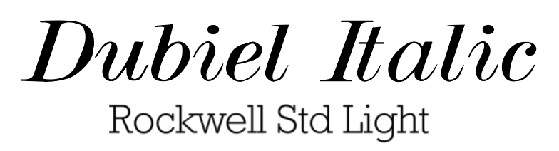 Although Rockwell can be a ‘bulky’ font, when paired with more delicate fonts such as Bembo & Dubiel Italic it creates the perfect balance for something you may seen in the pages of a magazine or in some cases the cover of books or posters.