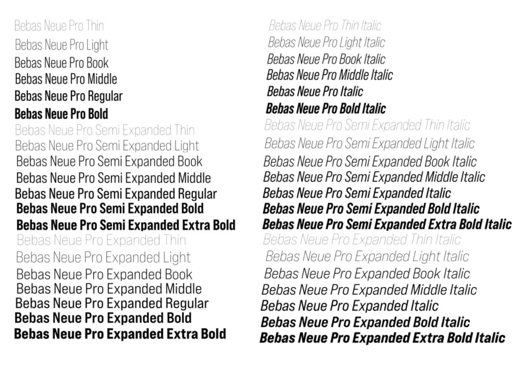 Bebas is a display family suitable for headlines, captions, and packaging, designed by Ryoichi Tsunekawa. It’s based on the original Bebas typeface. The Bebas family has had many adaptations over the years, the newest style out (2019) is Bebas Neue Pro, with 40 different styles making this typeface ascetically pleasing.