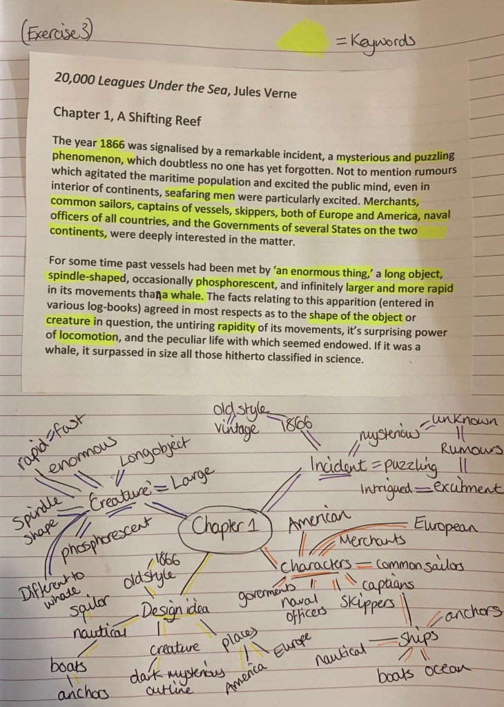 I started off by reading the extract then decided to print off my own version of the text so I was able to make notes to start stimulating ideas.