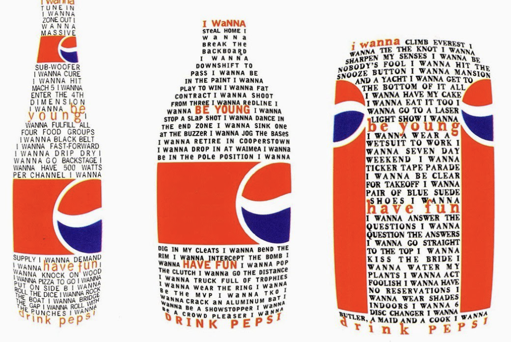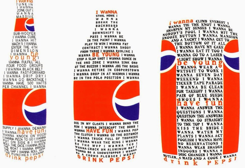 David Carsons is a very experimental designer and his style of work for this exercise has inspired me. No two designs are the same, the chaotic typography and pattern created with objects overlapping looks confusing yet holds the design together so well. I particularly like the Pepsi deigns and the mixed media collage – both very strong pieces of work which has given my ideas for this exercise!