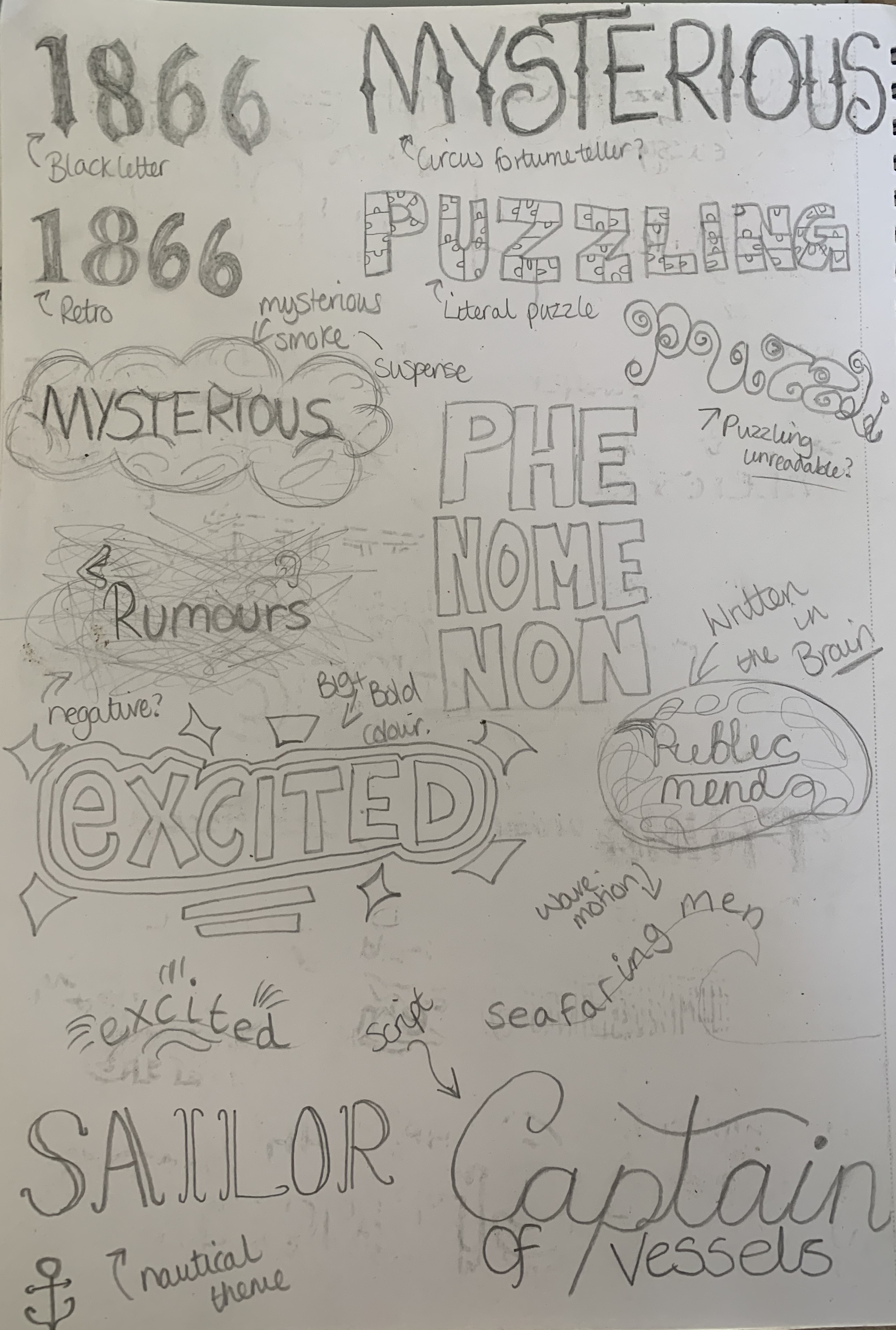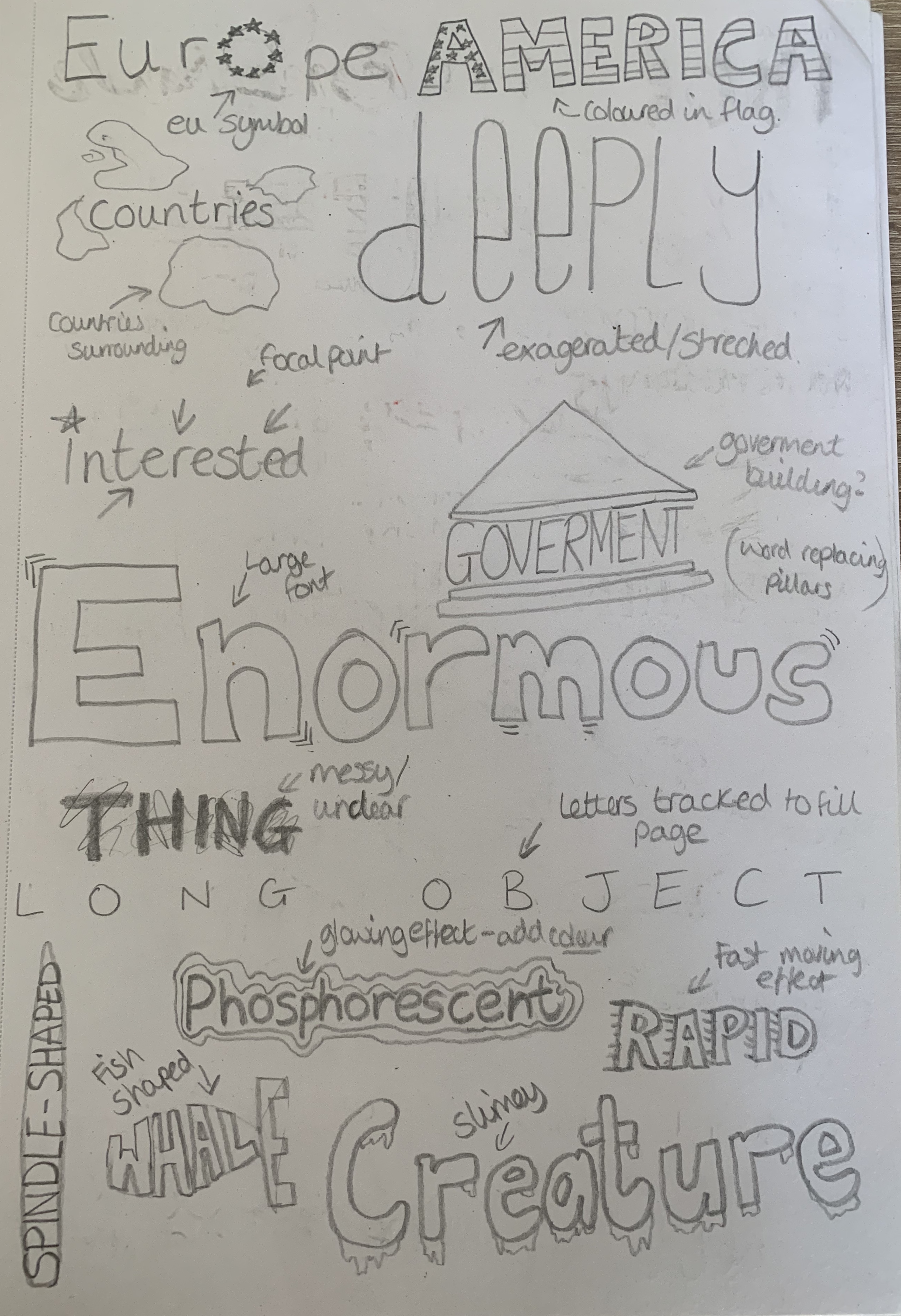 Firstly I decided to roughly sketch out the words visually, I done this as a quick thinking task as I didn’t want to think too deeply into the meanings at this point.