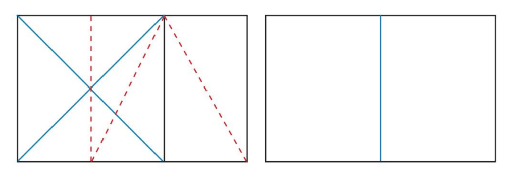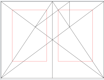 The red dotted line shows how a rectangle has been created from a square using the Golden Selection principle. It is then divided to form 2 facing pages.