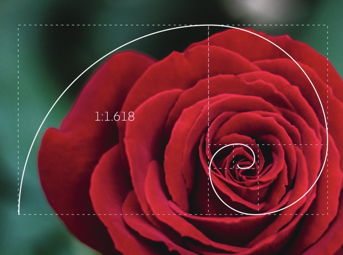 The Golden Selection/Ratio describes the perfectly symmetrical relationship between two proportions. Approximately equal to a 1:1.61 ratio, the Golden Ratio can be illustrated using a Golden Rectangle. This is a rectangle where, if you cut off a square (side length equal to the shortest side of the rectangle), the rectangle that’s left will have the same proportions as the original rectangle. The Golden Spiral is a spiral which has a growth factor of 1.618 It is found all over the natural and man-made world and is inherently aesthetically pleasing.