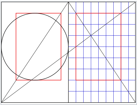 Jan Tschichold’s ‘golden canon of page construction’ is based on simple integer ratios, equivalent to Rosarivo’s ‘typographical divine proportion’. With the diagonals and circle, combined with Rosarivo’s construction by dividing the page into ninths. These two constructions rely on the 2:3 page ratio to give a type area height equal to page width as demonstrated by the circle, and result in margin proportions 2:3:4:6 (inner:top:outer:bottom).