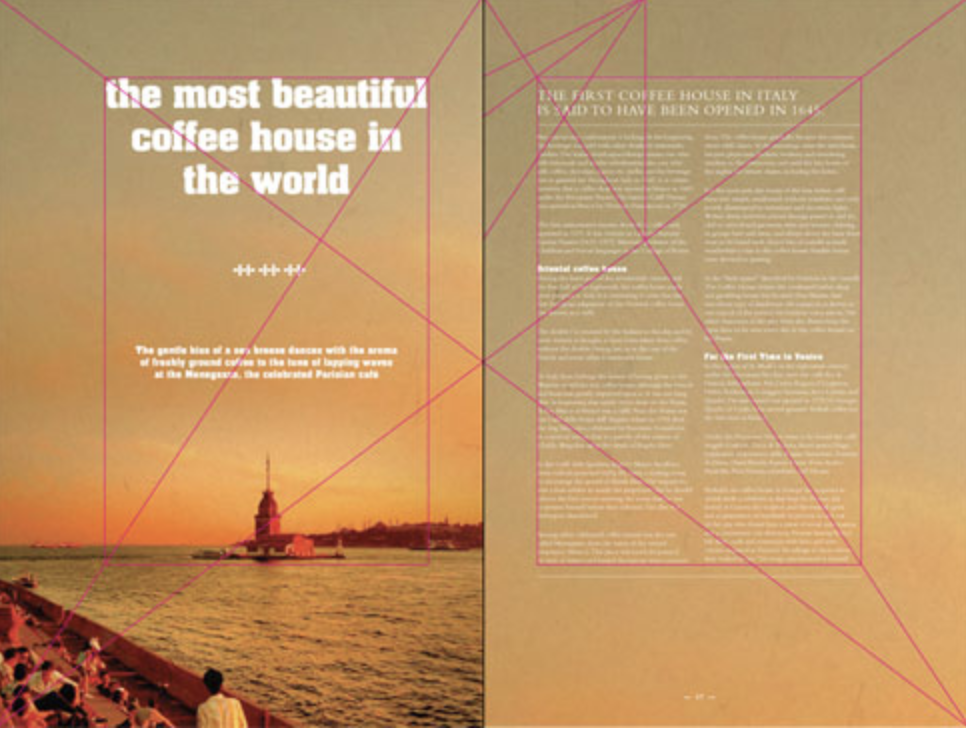 The Golden Section, or Golden Mean, has been applied by artists and designers over the centuries to create harmonious formats for their work. In his extensive research, Tschichold discovered that many book designers were based on the Golden Section. Based on a mathematical formula, and directly linked to the Fibonacci series, the Golden Selection provides a method of creating and dividing space that is a useful working framework for the book designer.