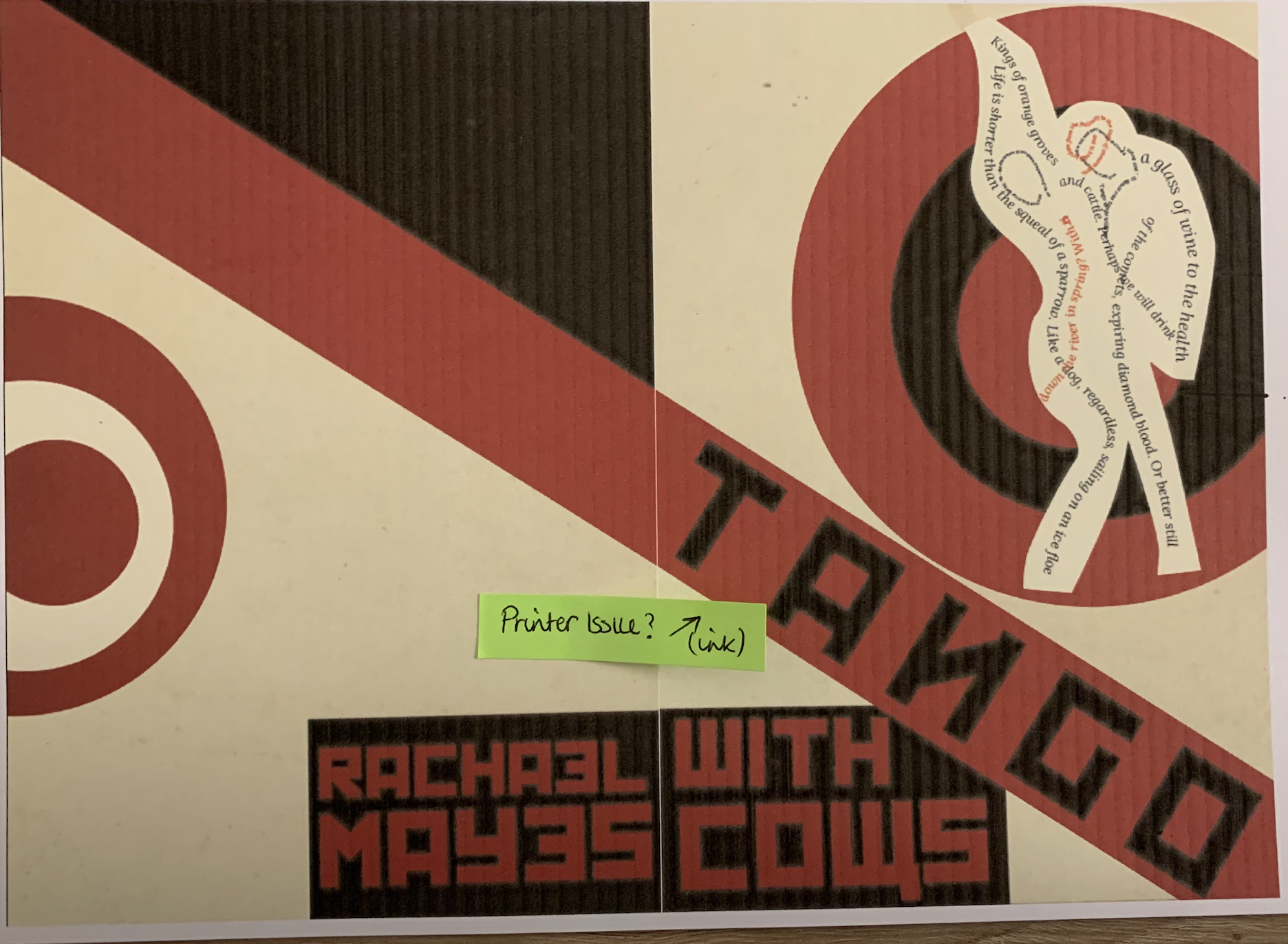 I was pleased that I was able to incorporate my concrete poem into the front cover of the booklet, I have tried to fit this in with the theme of constructivism art by creating a slight cut and paste technique, which surprisingly made this fit in well! it seemed a shame not to use it considering its about the same topic.