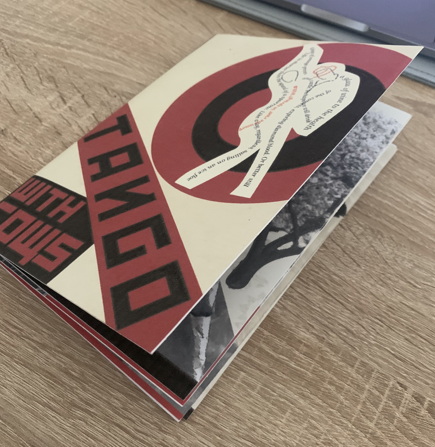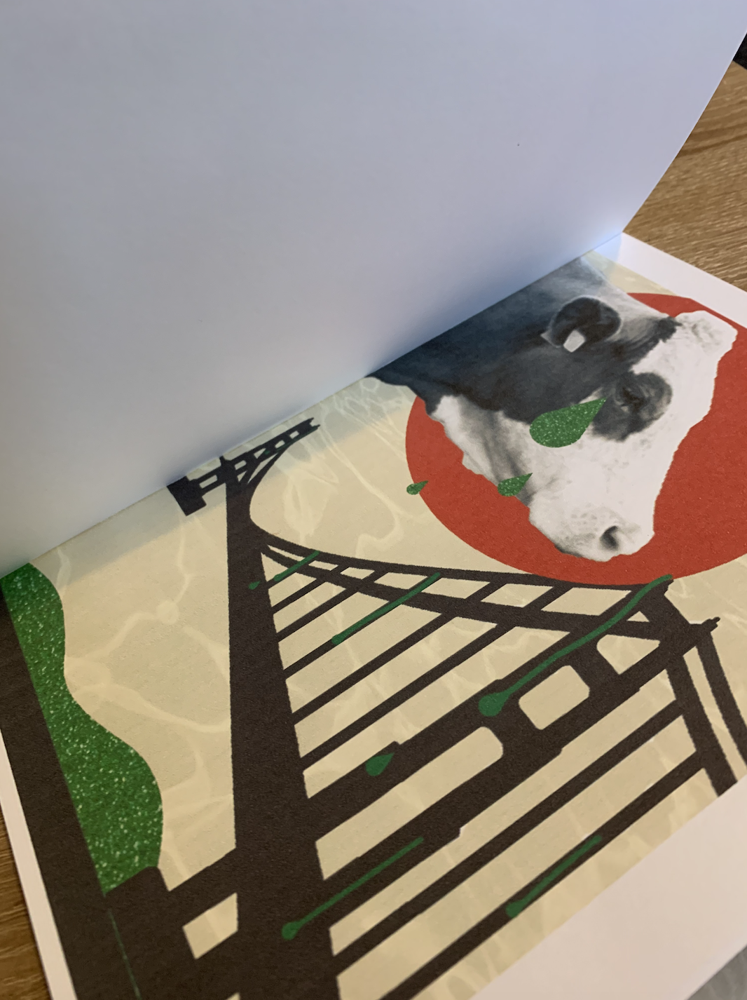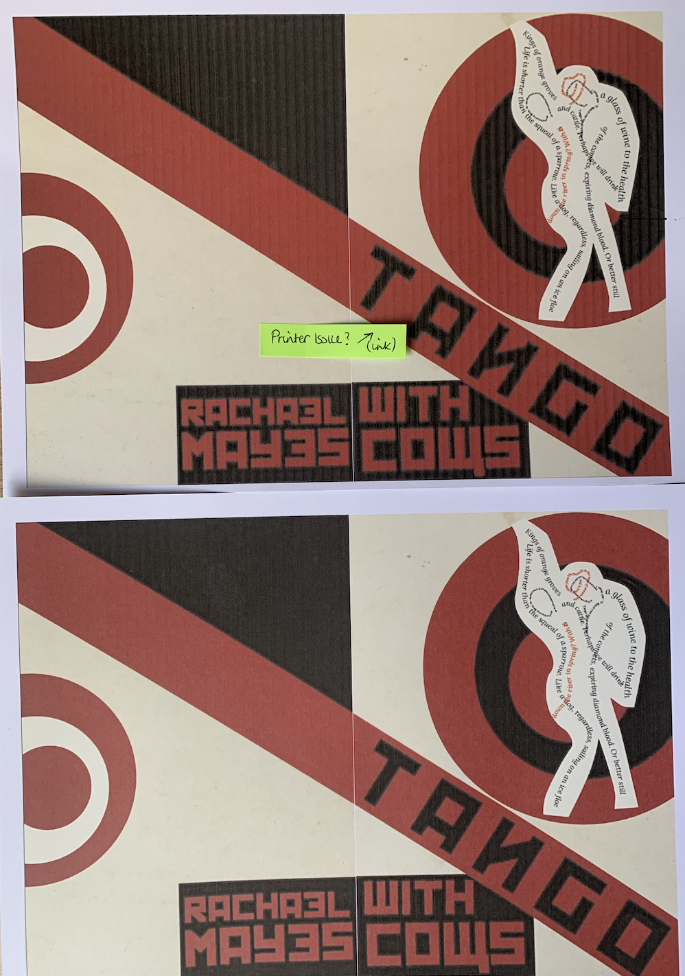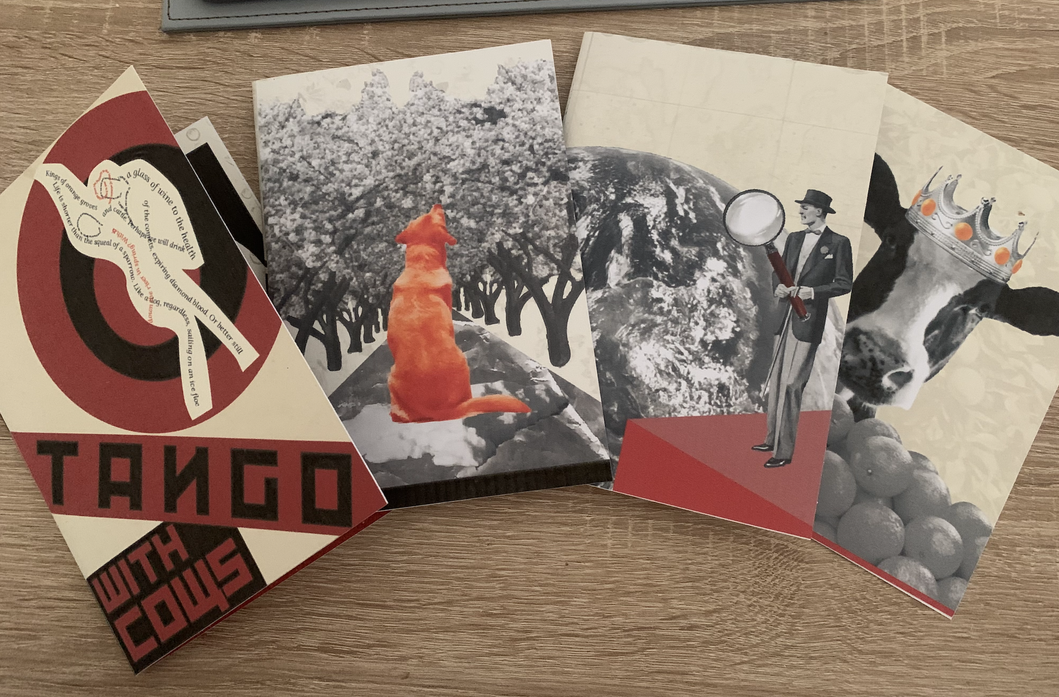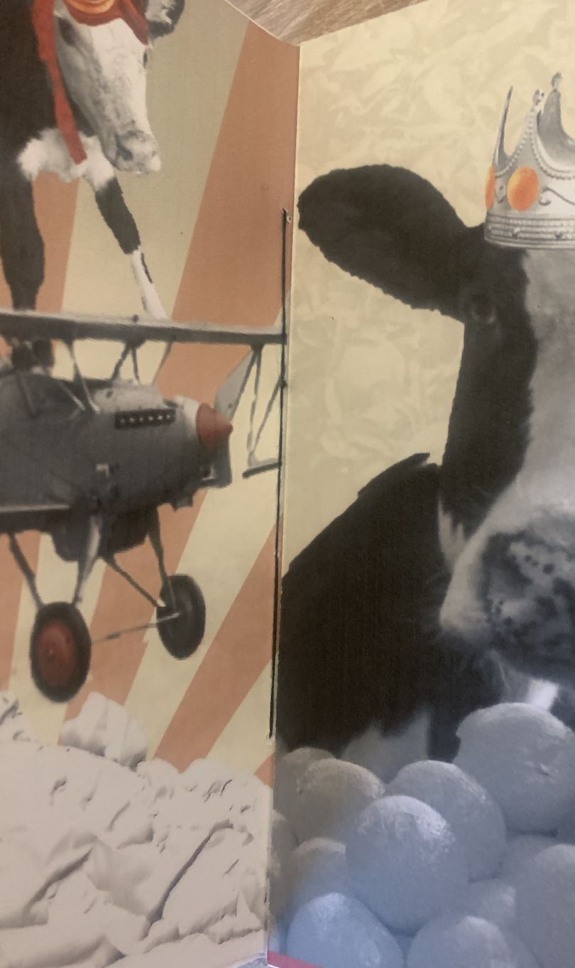 Looking back over my images I feel pleased and confident with each design. It wasn’t until I flicked through my booklet mockup that I realised I have unintentionally linked both facing pages when open, for example.. page 2 & 3 – Animal (Sparrow and dog) 4 & 5 – searching men (destiny and discoverers) 6 & 7 – cows (conquerors and kings) 8 & 9 – droplets (wine and blood) 10 & 11 – music (record play and tango) 12 & 13 – tears (bovine and crimson). I’m going to take this as a happy accident that I have created connections between the pages.