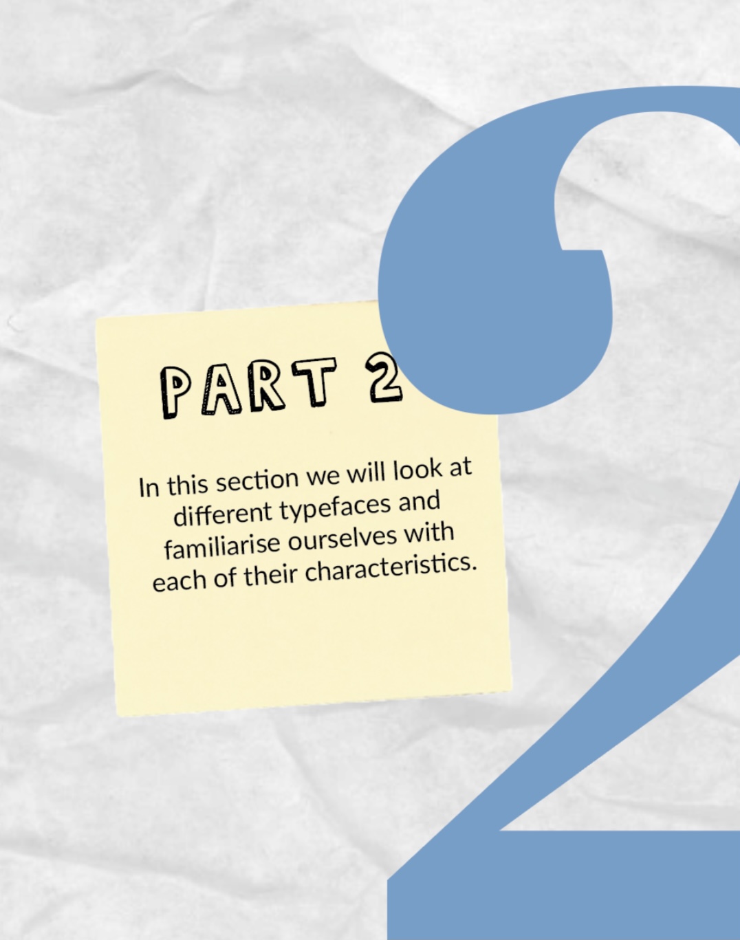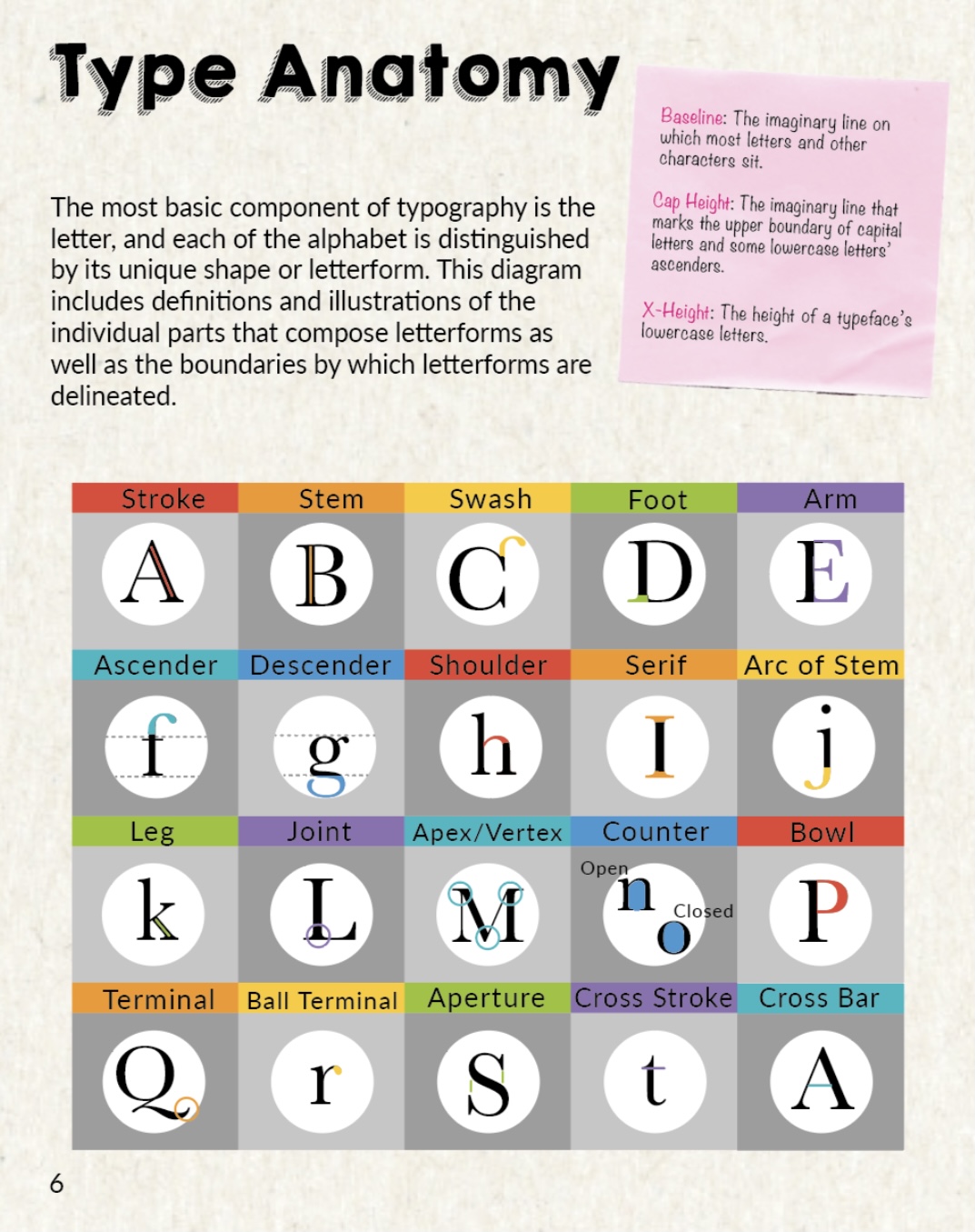 - Introduction to Typefaces and Understanding Letterforms – Here I will give a brief run over of what a typeface is with a diagram of the anatomy of a typeface, including a description of the structure of letterforms. (strokes, bowls, serifs etc).