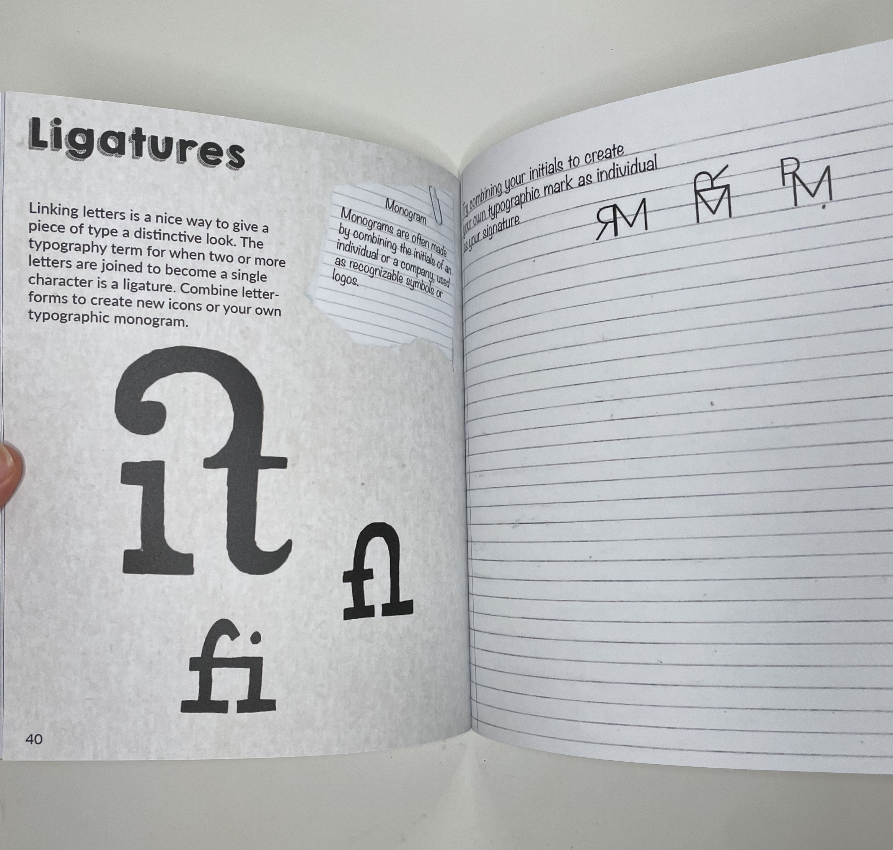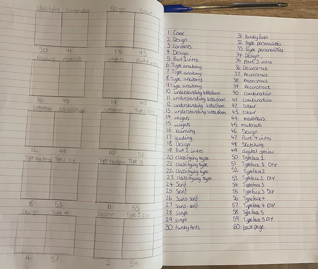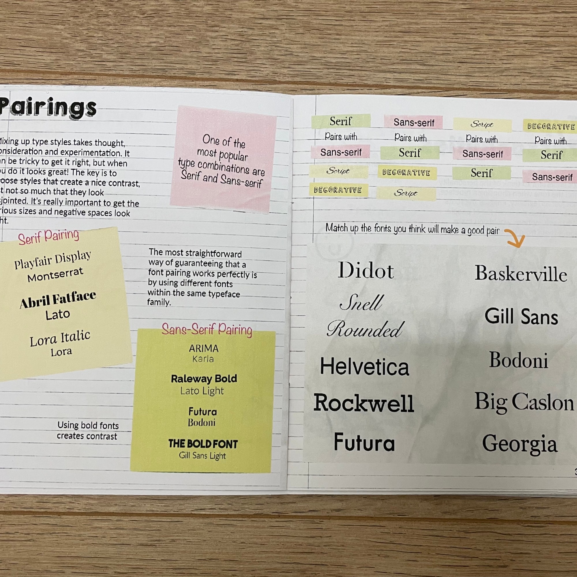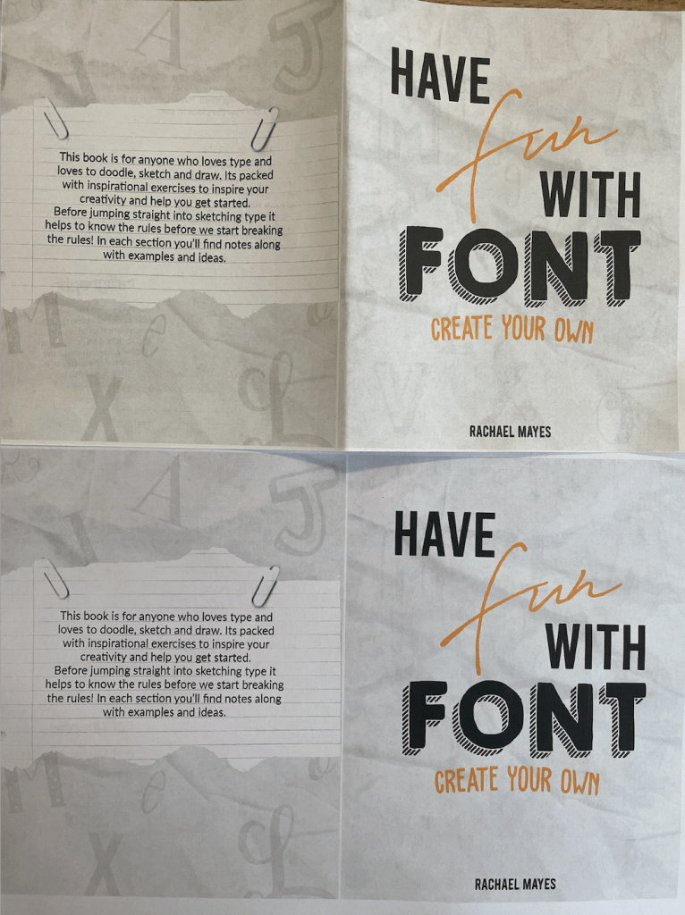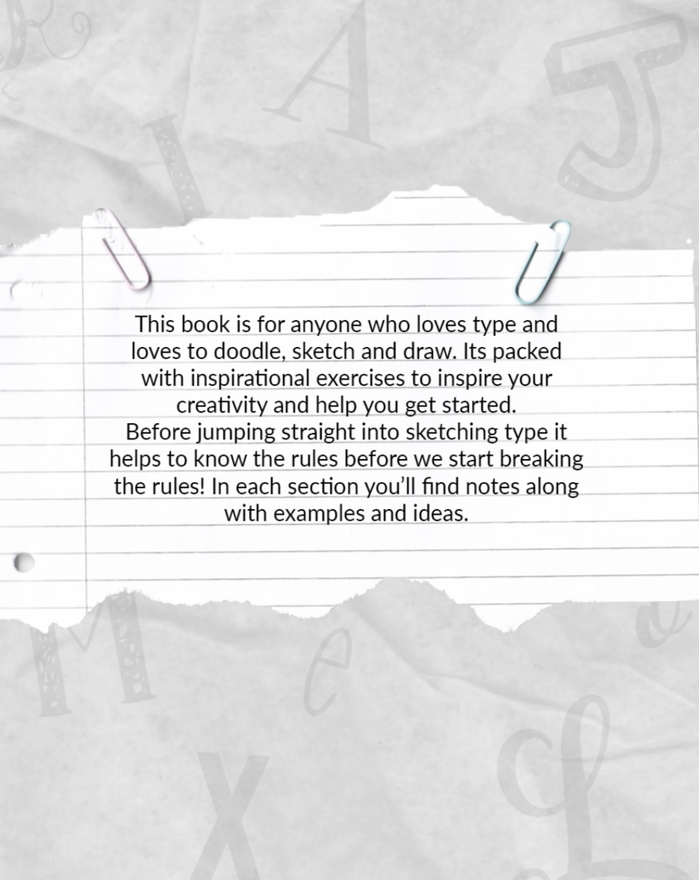 I’m keen on the idea of having a theme throughout my book, It would be fun if it was presented in the style of a notebook/journal, with lined paper backgrounds and doodles/sketches of typefaces. I could add in scanned elements similar to those used in my zine for assignment 1 of different papers and post it notes. This would give my book more of a creative and unique feel compared to others available on the market offering something similar on the chosen topic.