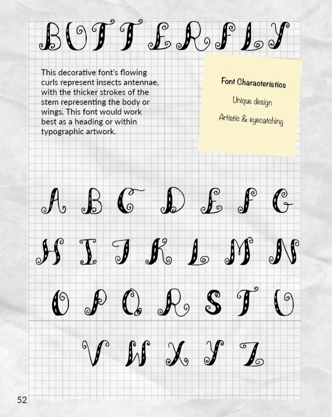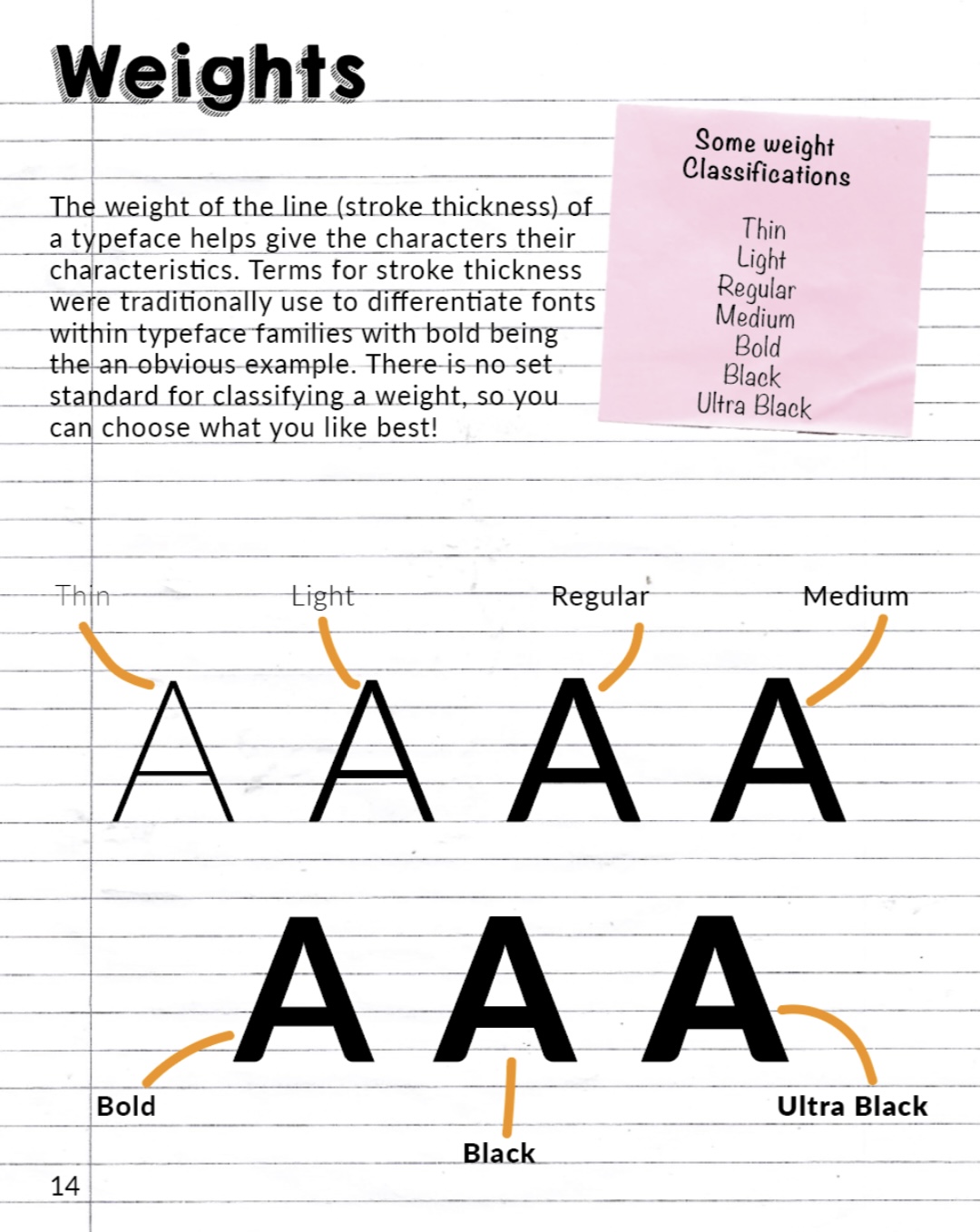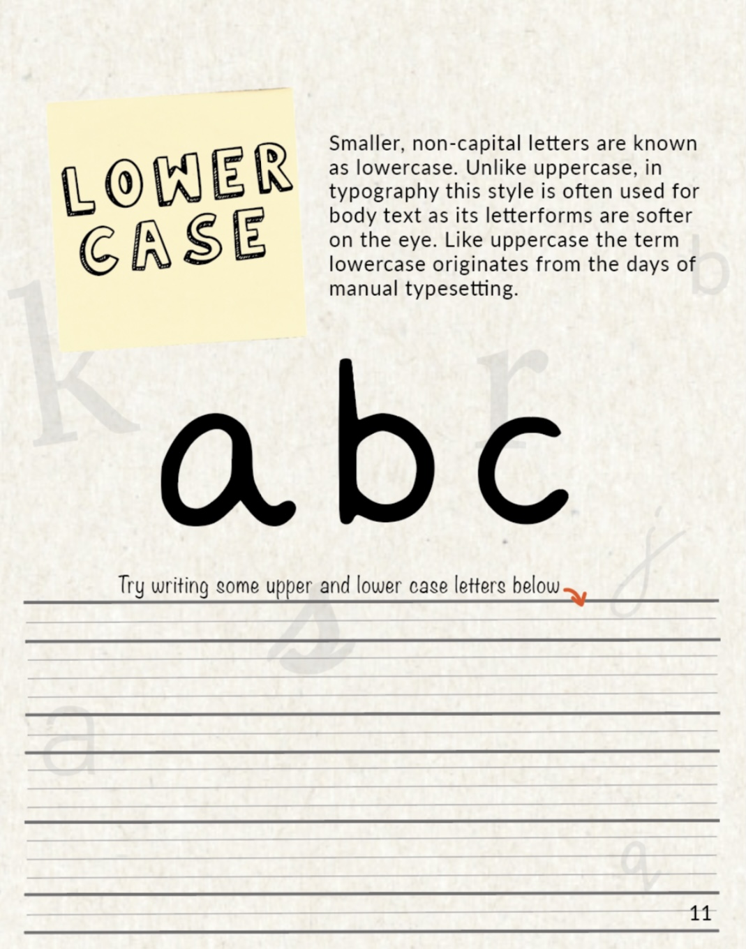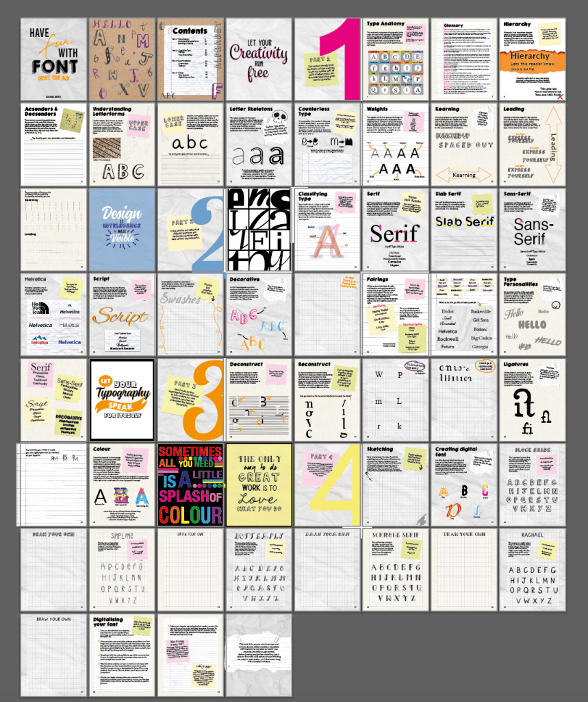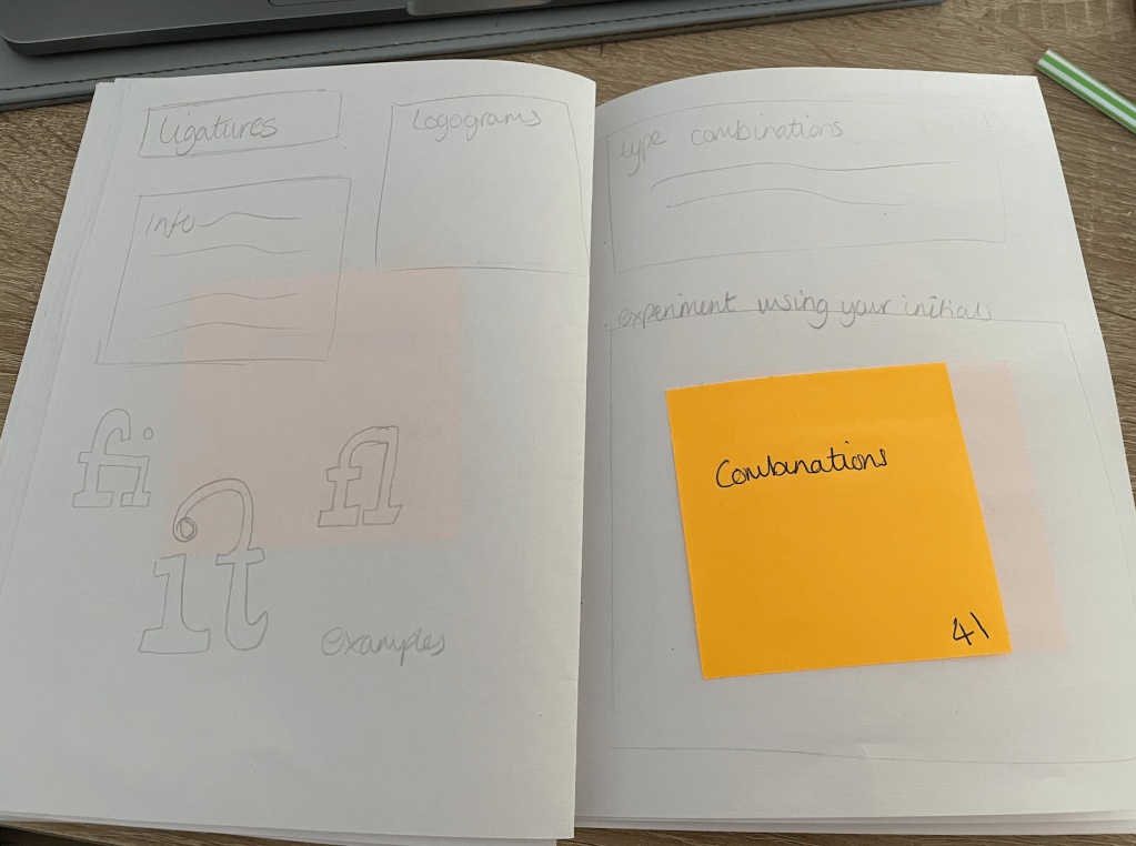 I’m keen on the idea of having a theme throughout my book, It would be fun if it was presented in the style of a notebook/journal, with lined paper backgrounds and doodles/sketches of typefaces. I could add in scanned elements similar to those used in my zine for assignment 1 of different papers and post it notes. This would give my book more of a creative and unique feel compared to others available on the market offering something similar on the chosen topic.