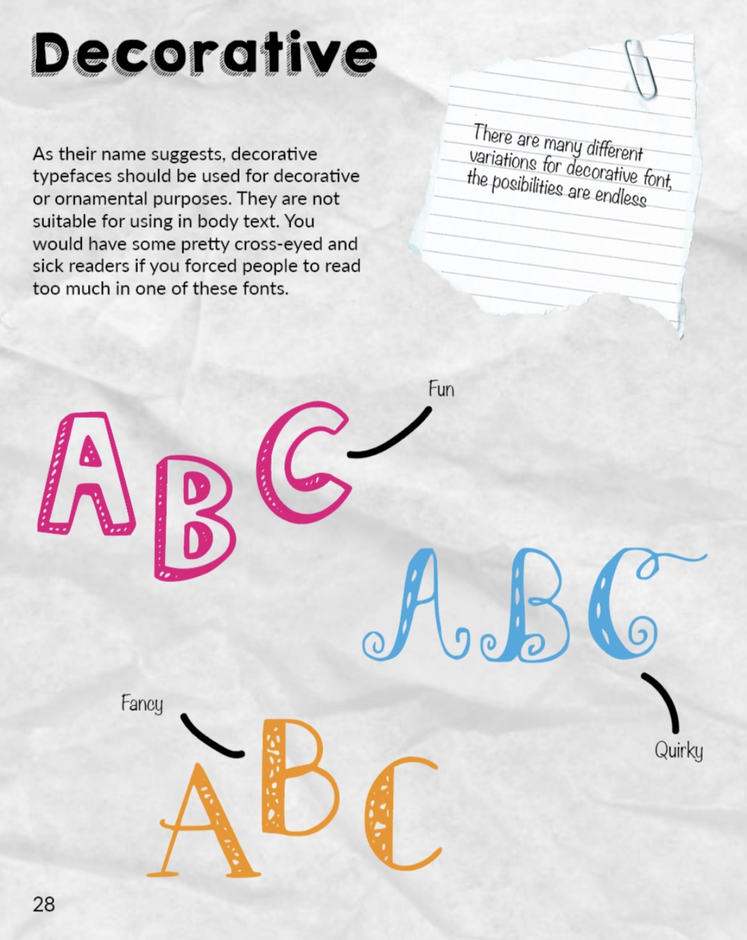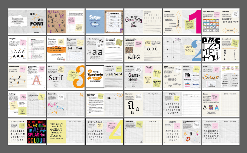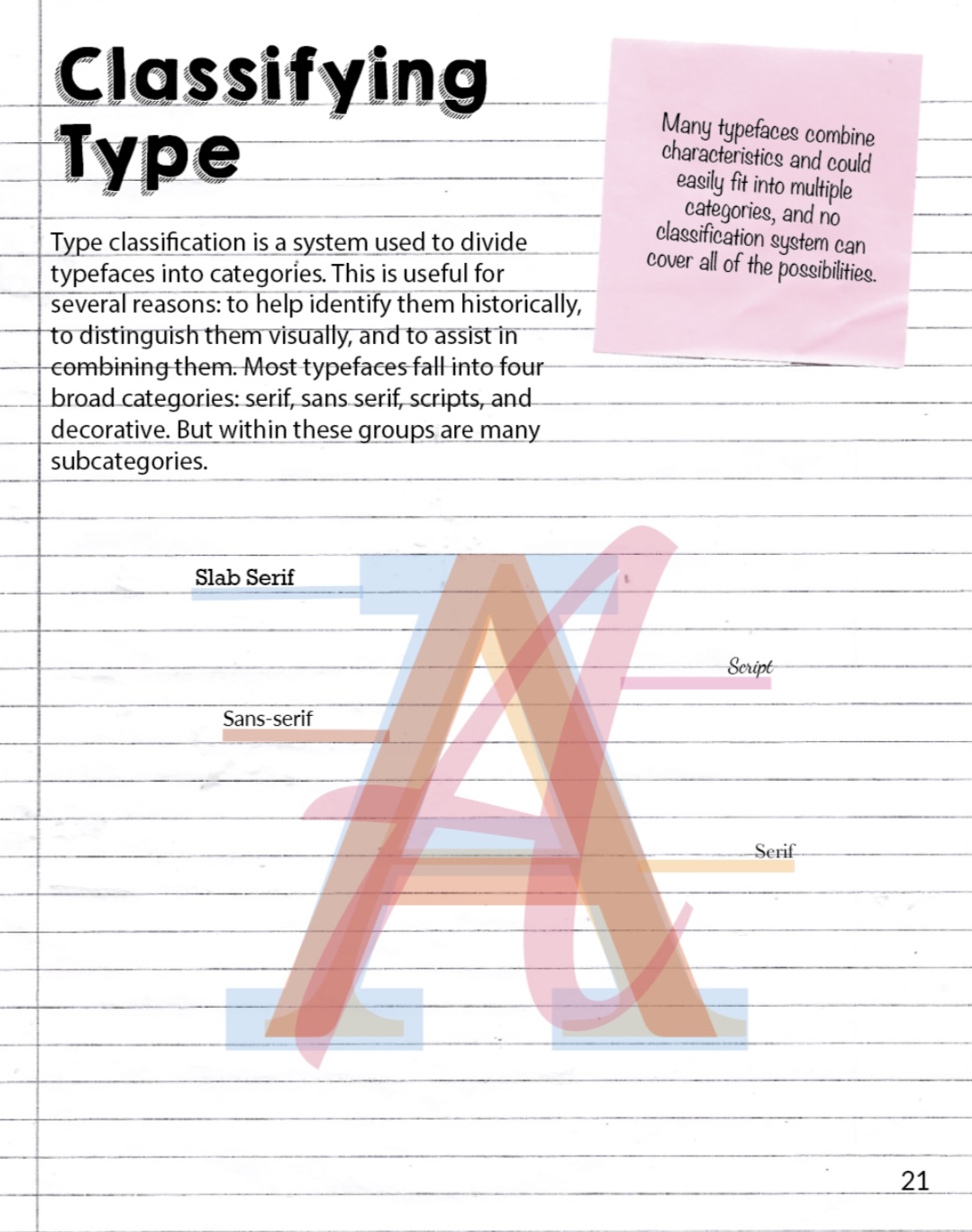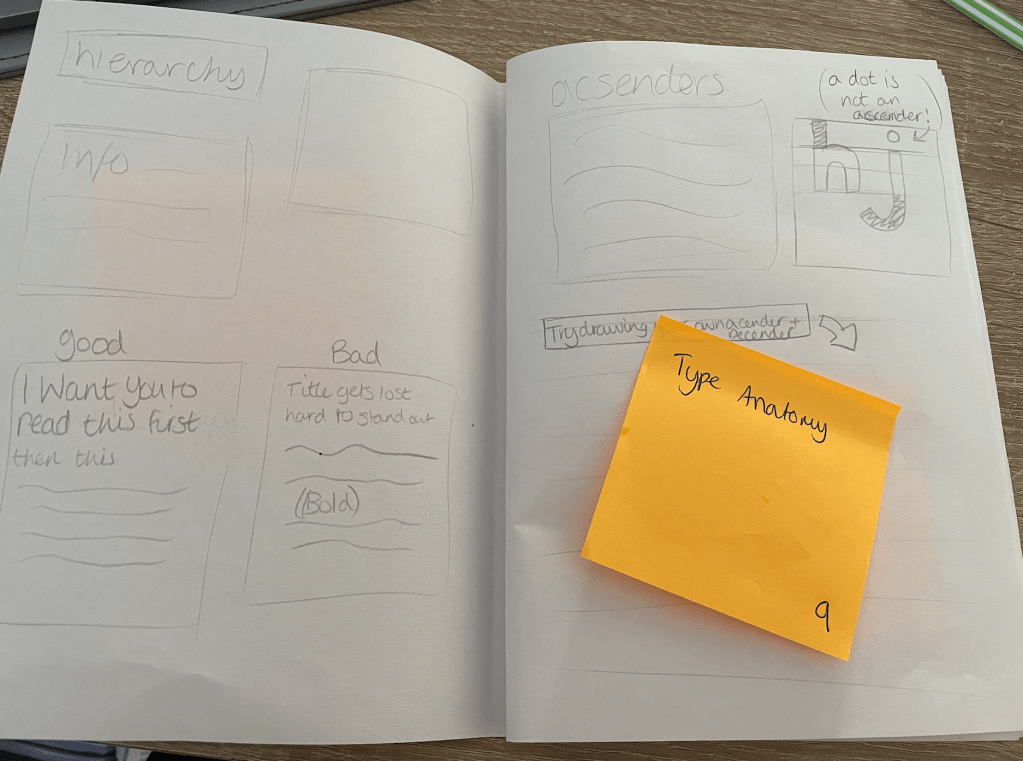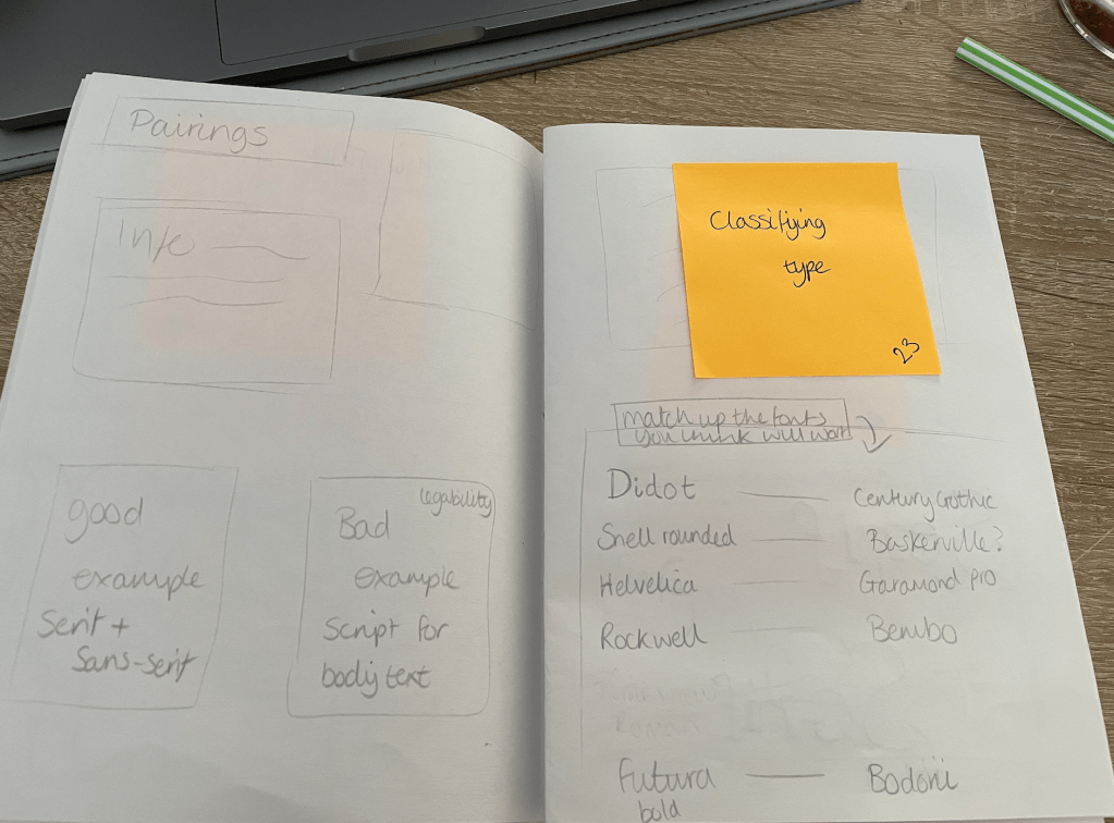 I’m keen on the idea of having a theme throughout my book, It would be fun if it was presented in the style of a notebook/journal, with lined paper backgrounds and doodles/sketches of typefaces. I could add in scanned elements similar to those used in my zine for assignment 1 of different papers and post it notes. This would give my book more of a creative and unique feel compared to others available on the market offering something similar on the chosen topic.
