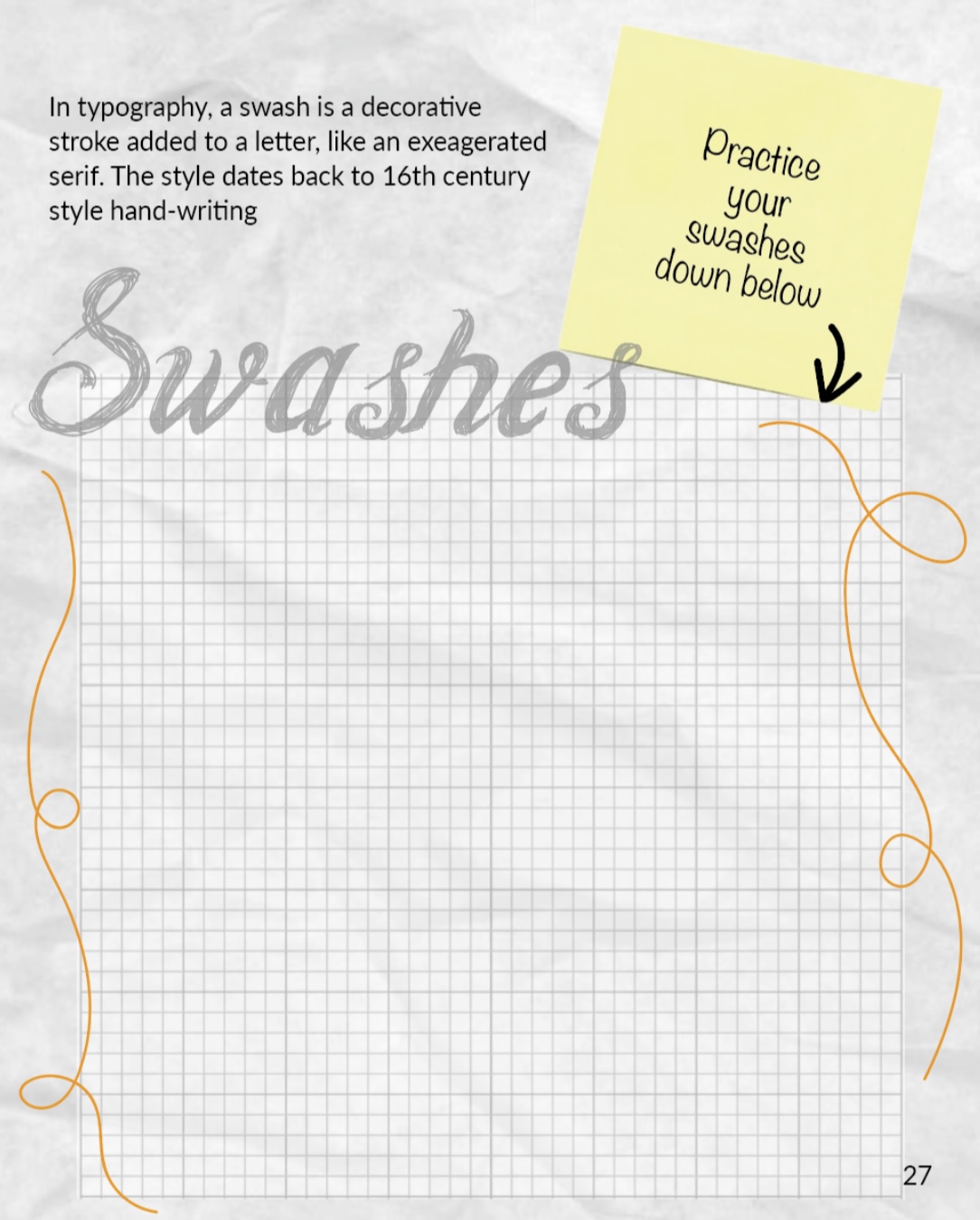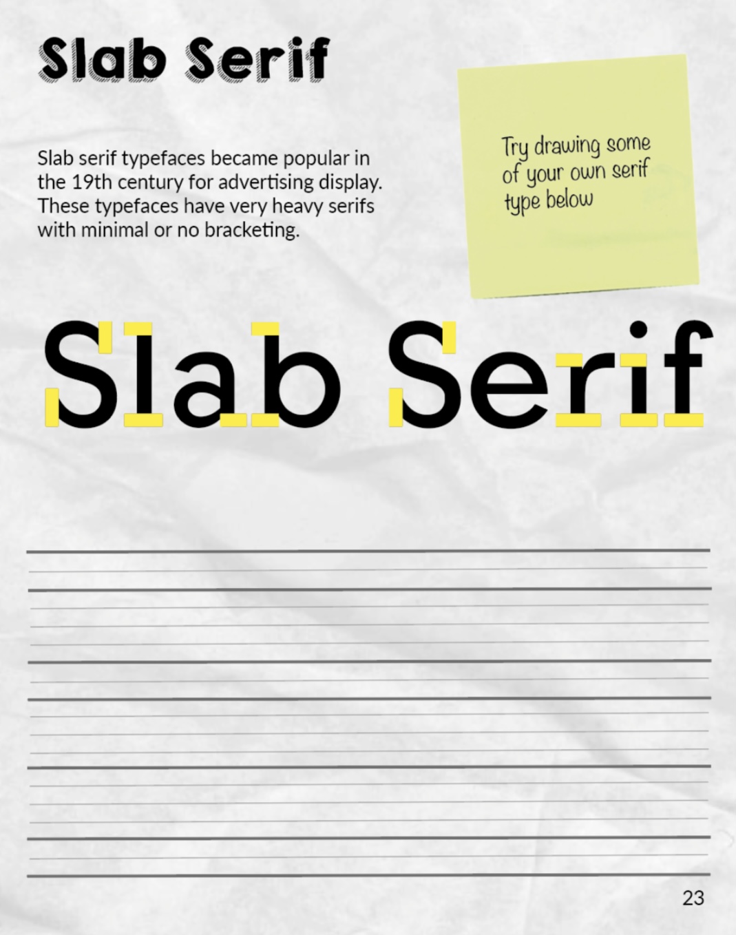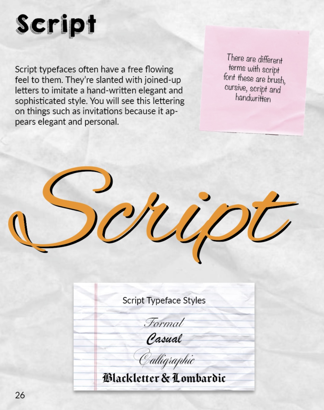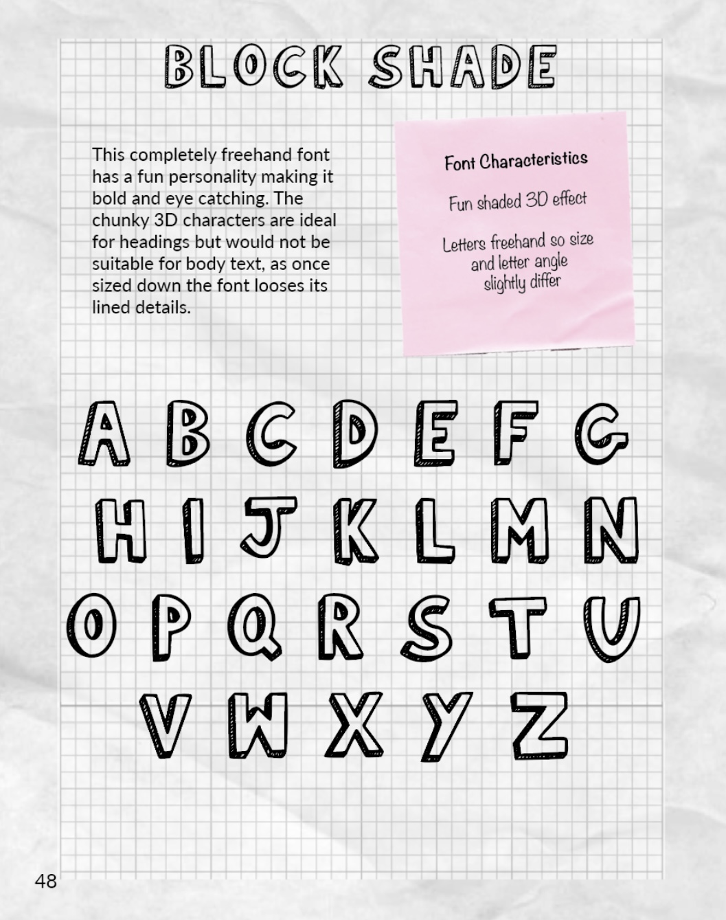 I’m keen on the idea of having a theme throughout my book, It would be fun if it was presented in the style of a notebook/journal, with lined paper backgrounds and doodles/sketches of typefaces. I could add in scanned elements similar to those used in my zine for assignment 1 of different papers and post it notes. This would give my book more of a creative and unique feel compared to others available on the market offering something similar on the chosen topic.